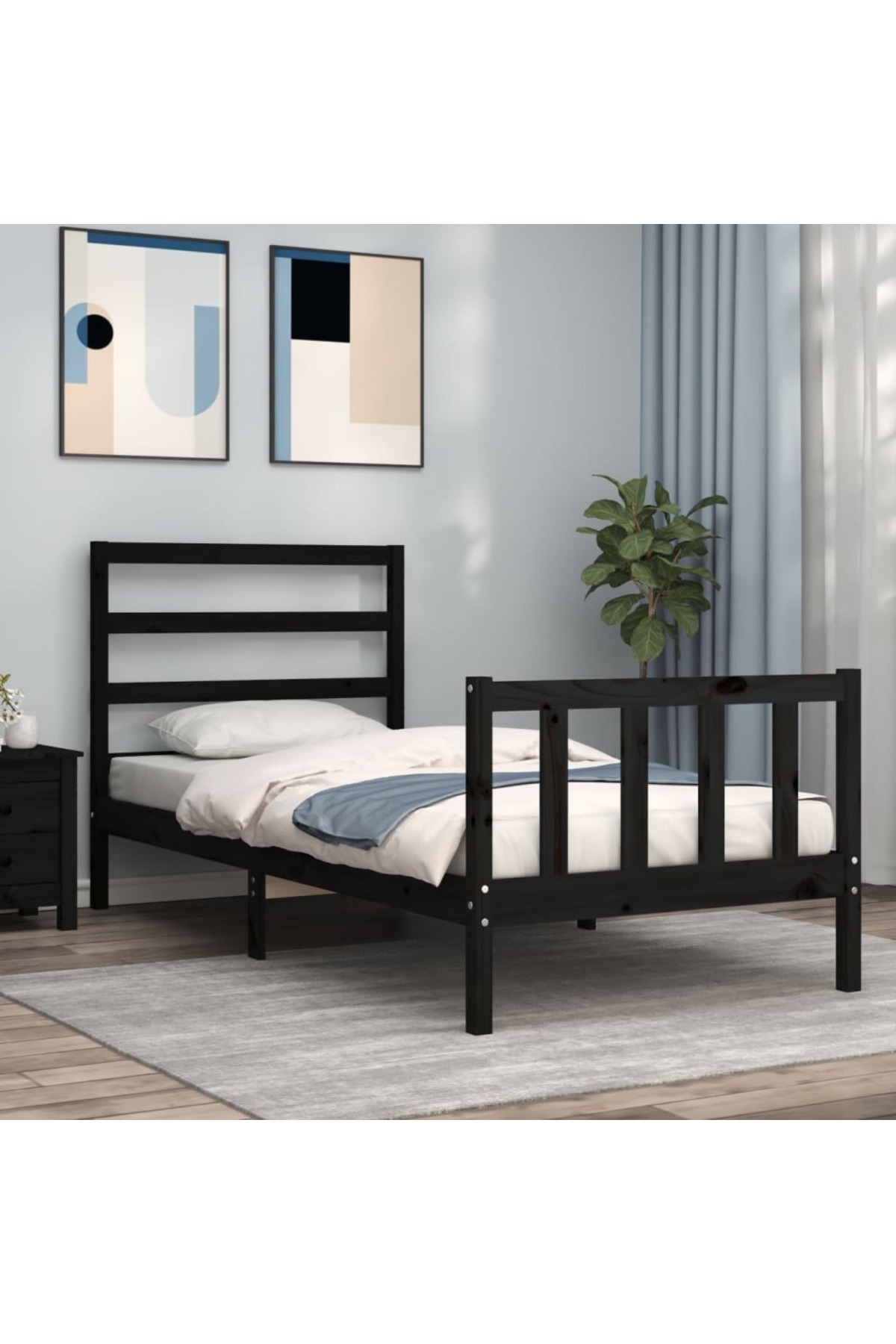 Concept 2FT6 Small Single Bed Frame with Headboard, Black, Solid Wood