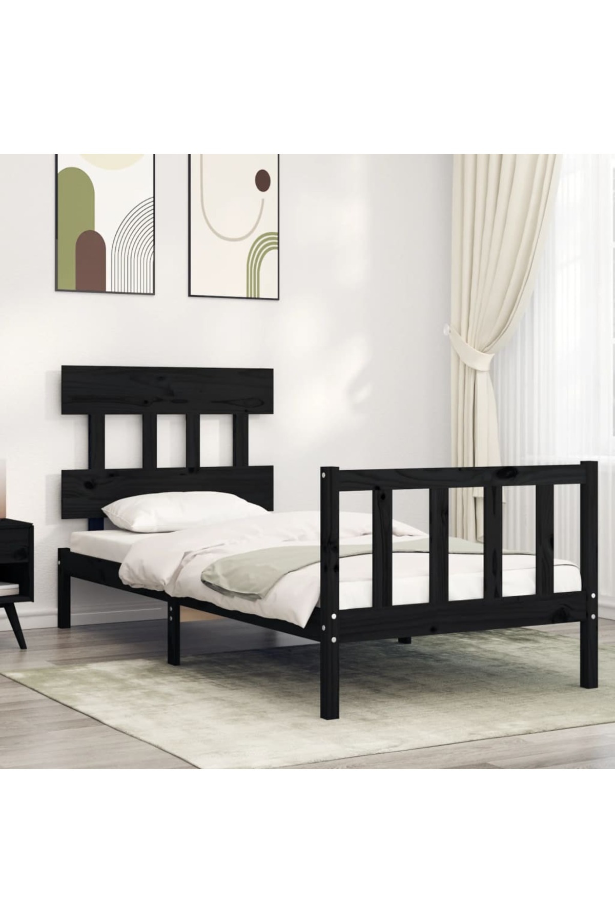 Concept 2FT6 Small Single Bed Frame with Headboard, Black, Solid Wood