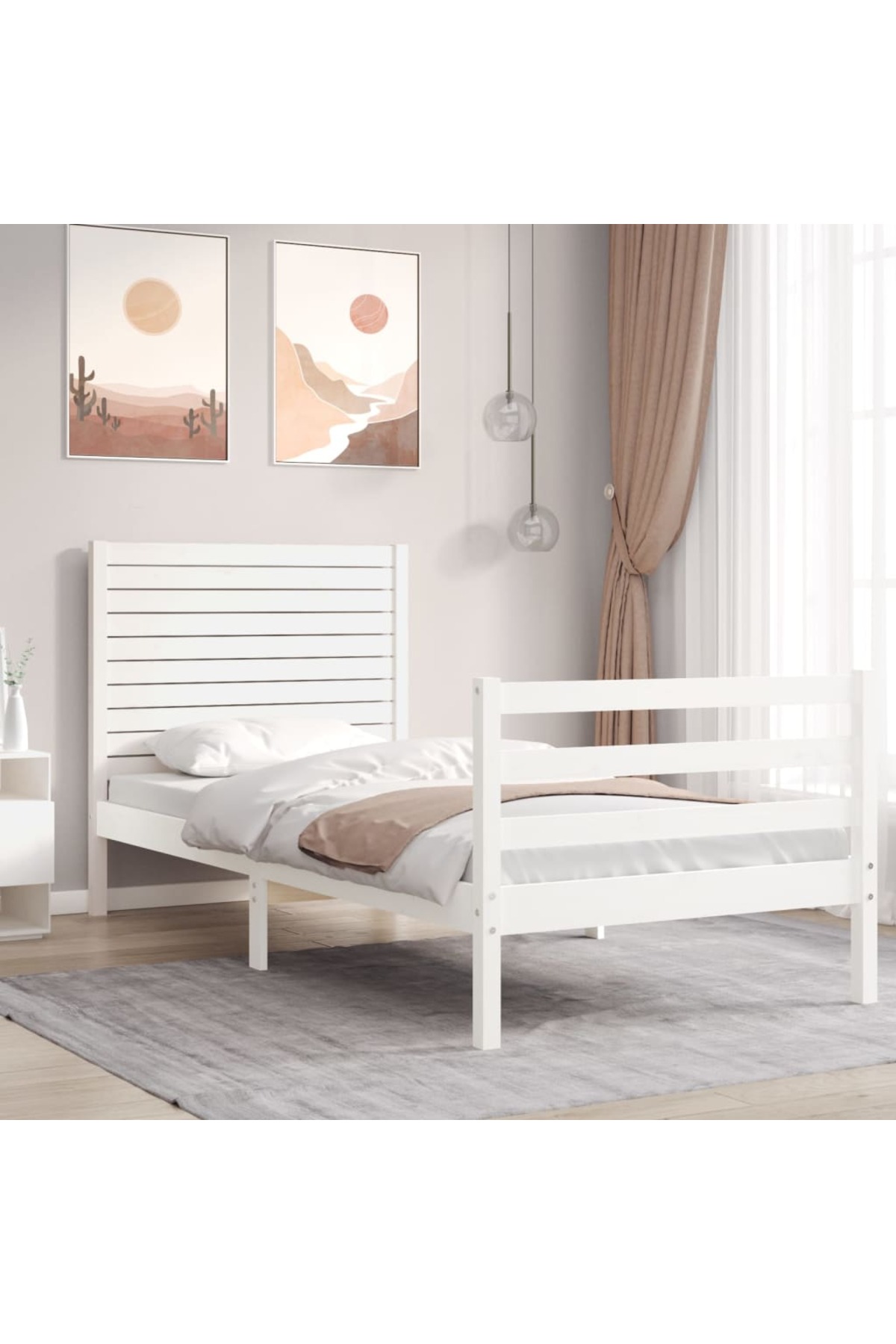 Concept Bed frame with headboard 3FT, single, white, solid wood
