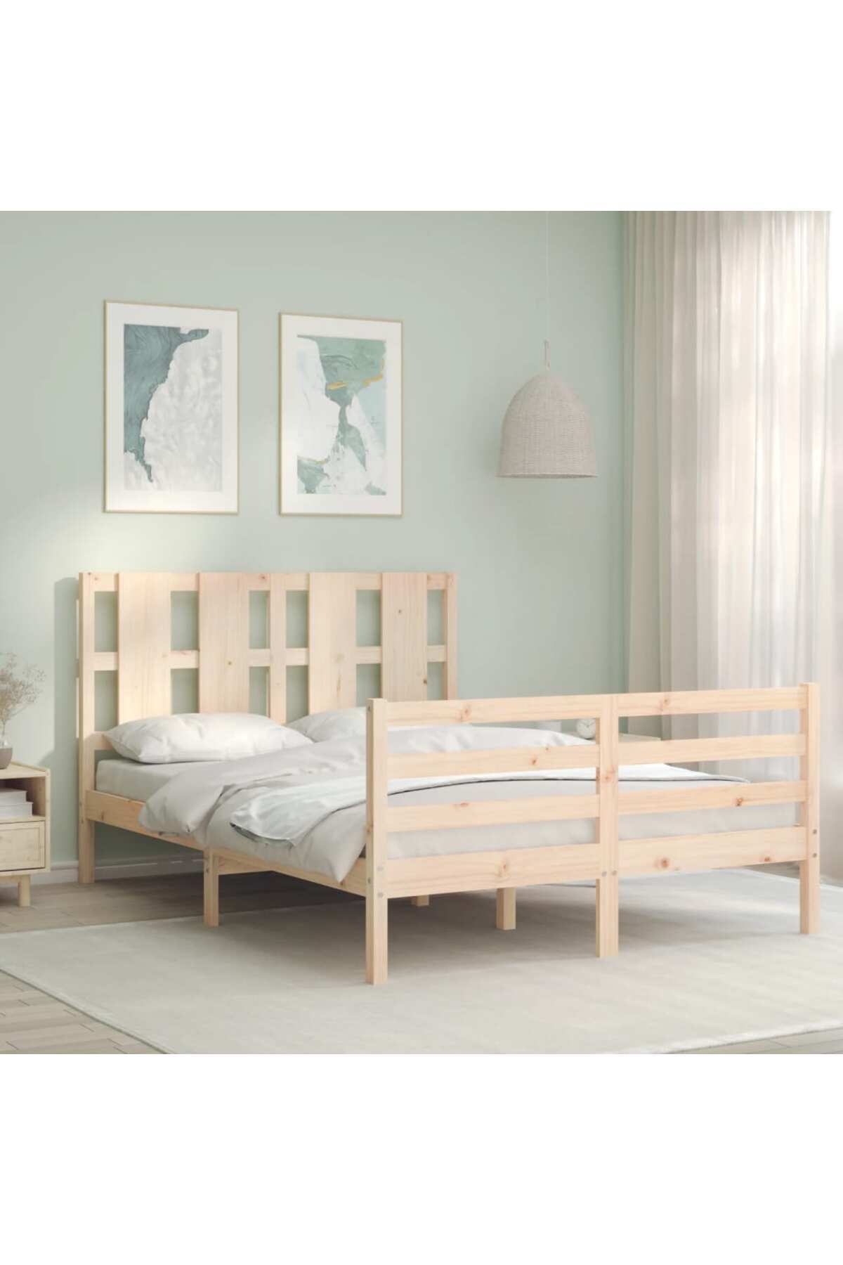 Concept Bed frame with headboard, solid wood, double 4FT6