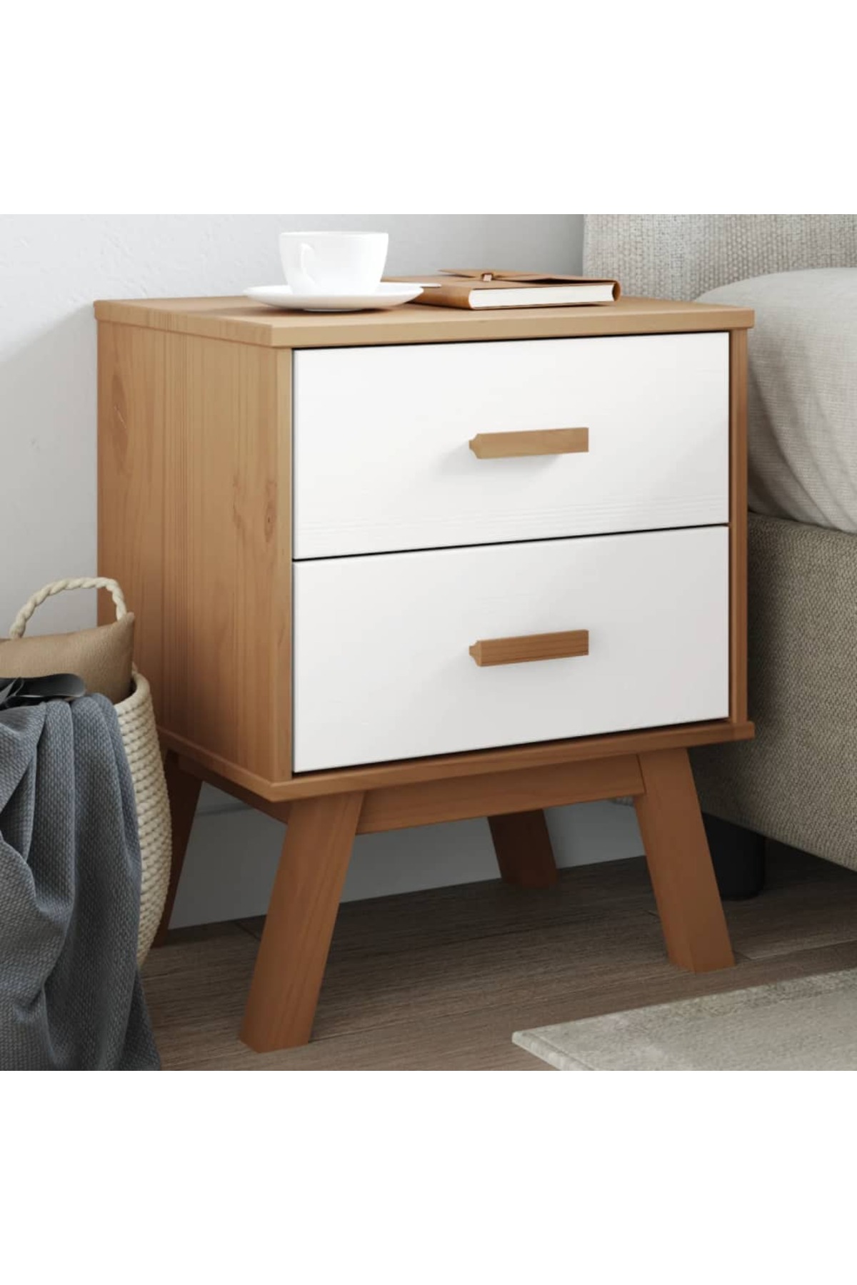 Concept "OLDEN" bedside table, white and brown, solid pine wood features