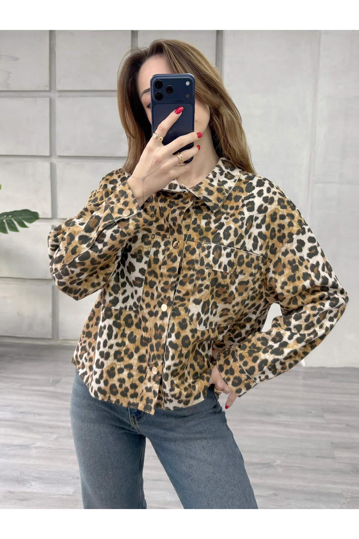 Coral Leopard Patterned Jacket 24273 Brown