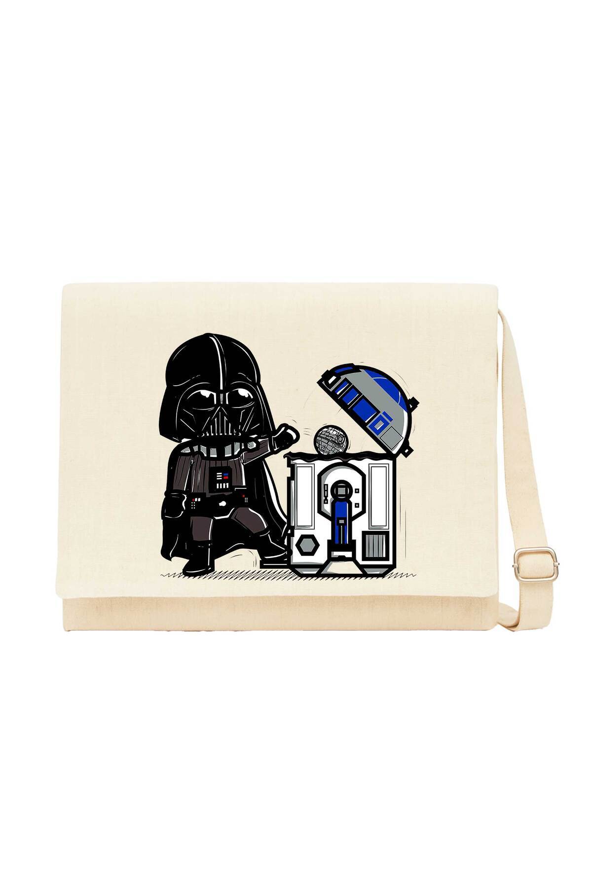 CrowsGate Darth Vader R2D2 Trashcan Cream Canvas Messenger Bag features