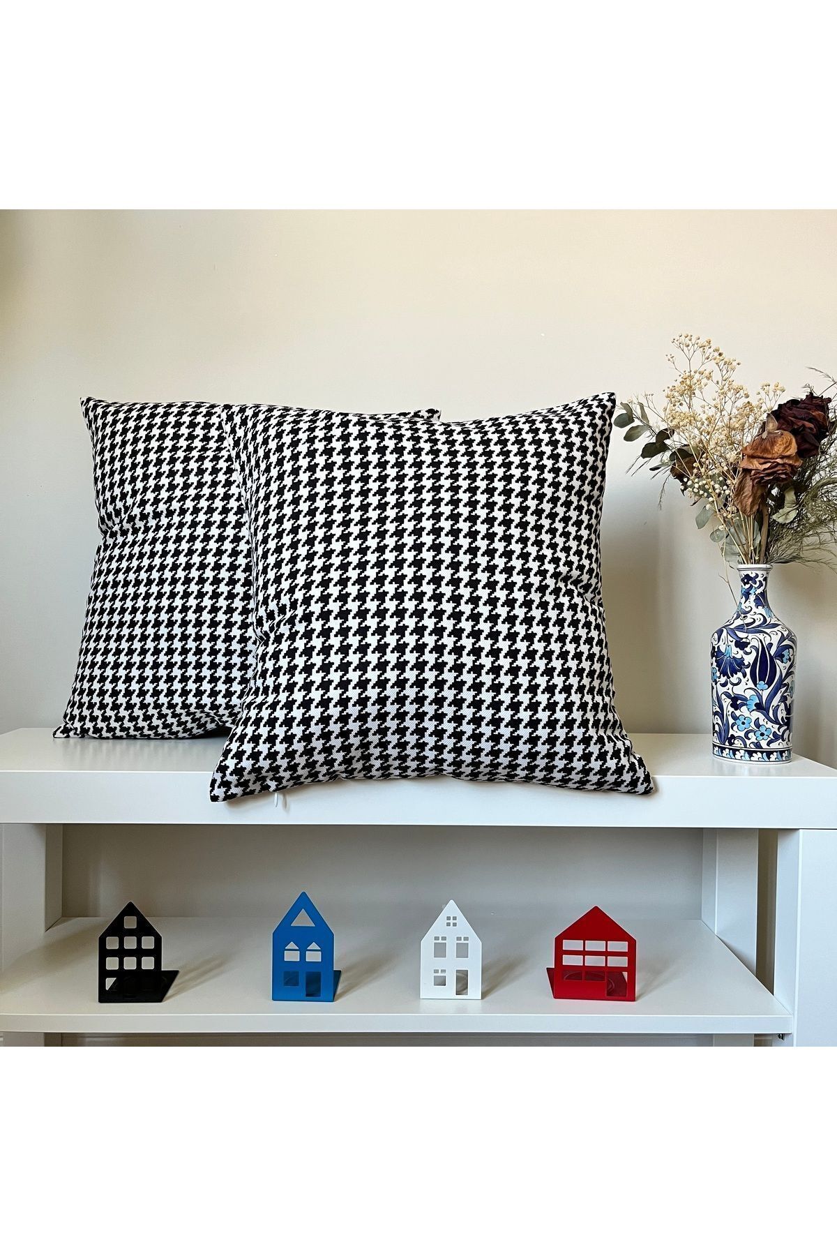 DECO Digital Printed Houndstooth Patterned Throw Pillow Cover features