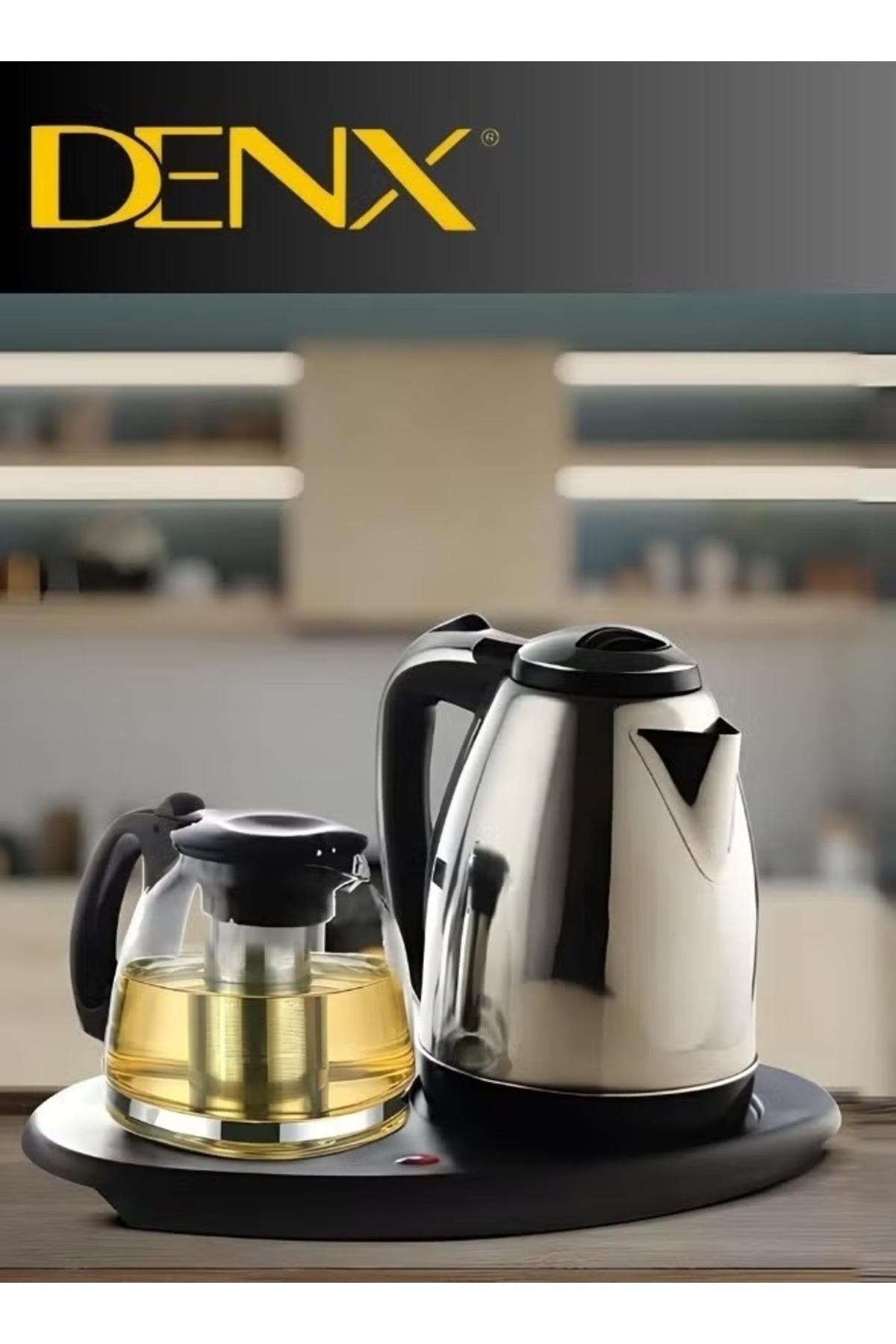 Denx Electric kettle with tea tray and automatic shut-off function features