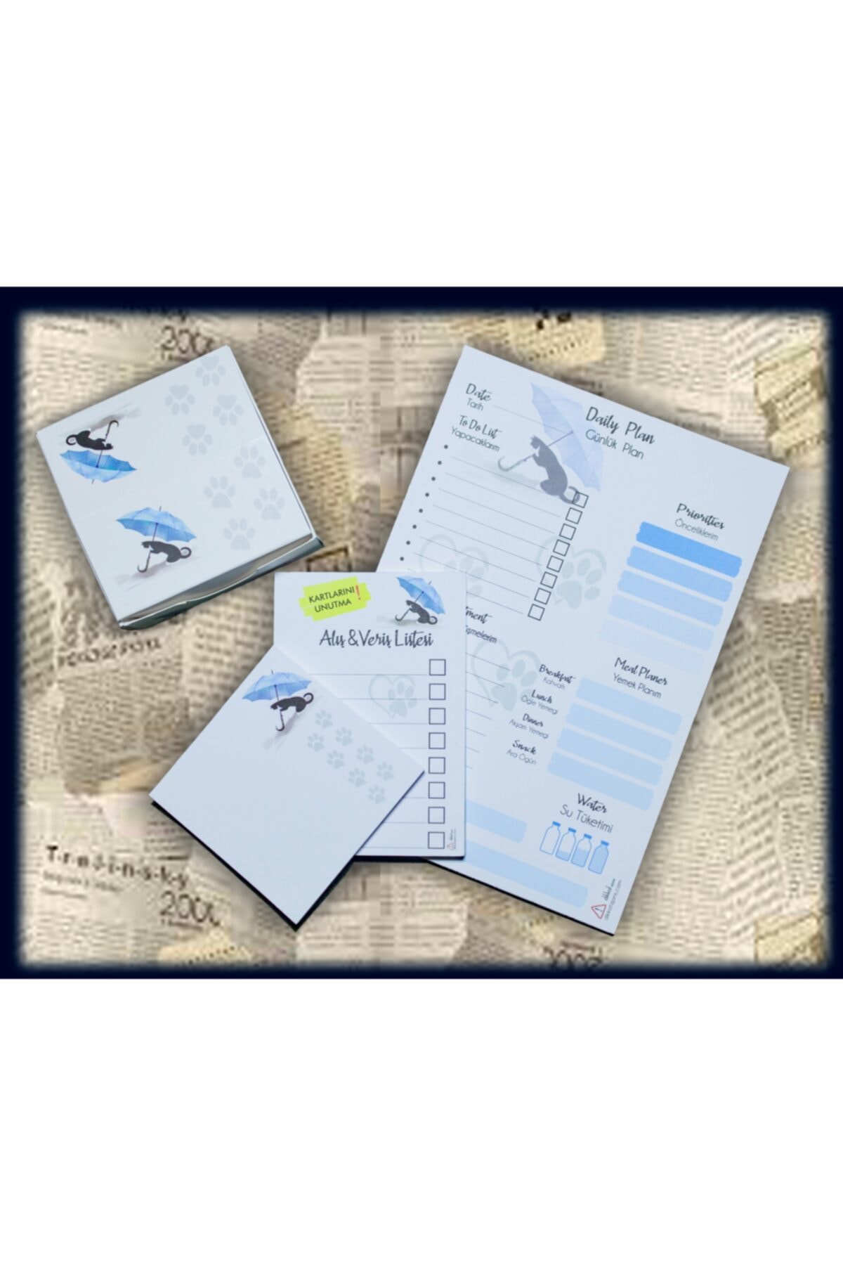 Dikkat Ajans Blue Cat Pattern Note Papers Set features