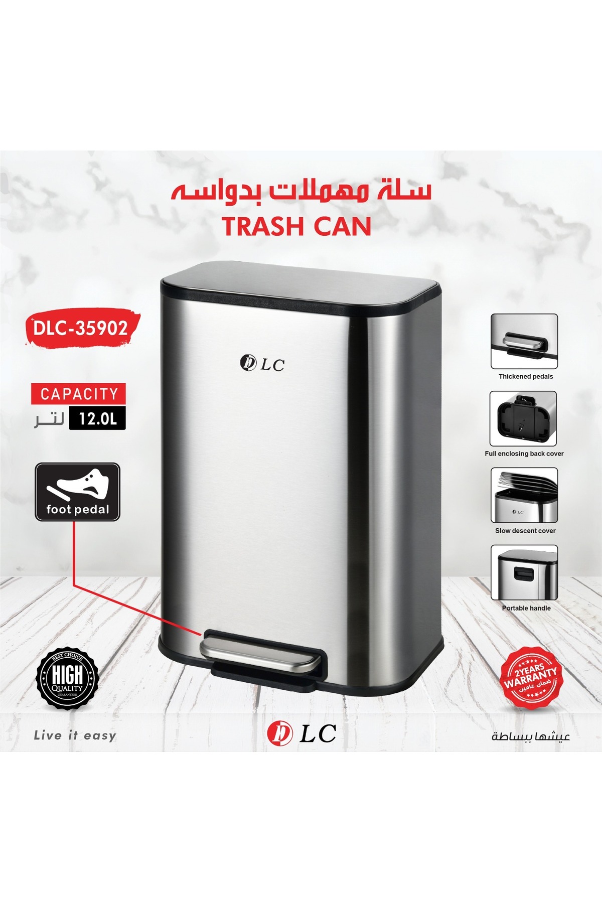 DLC square-shaped waste container features
