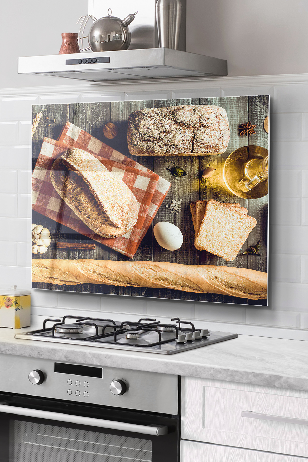 DreamHomes Kitchen Glass Stove Back Protector | Bread Pattern features