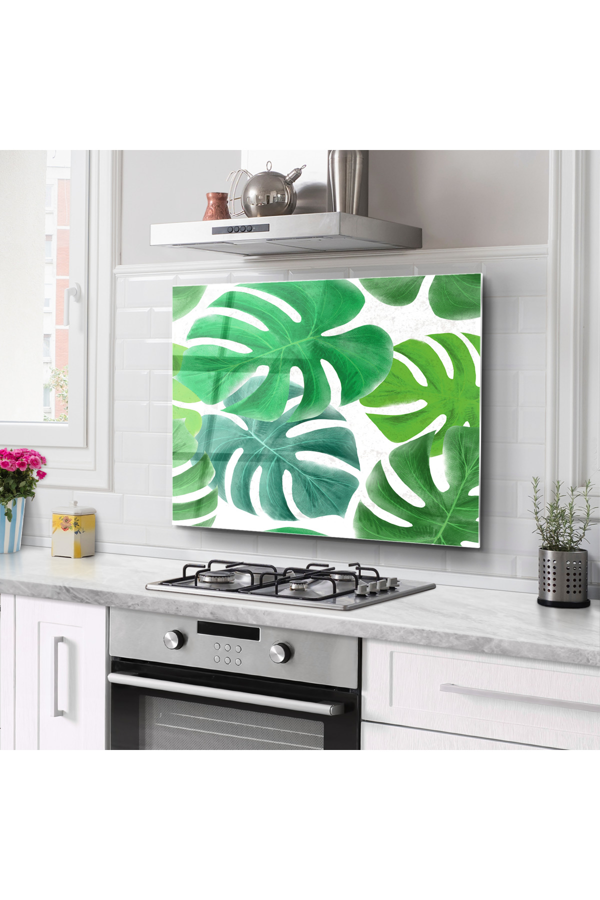 DreamHomes Kitchen Glass Stove Back Protector | Leaf Pattern features