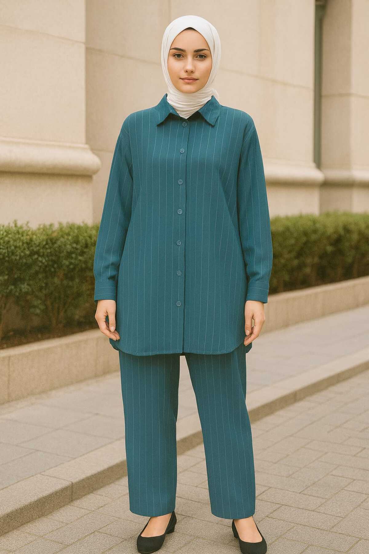 ECK MODA Women's Crepe Lycra Stretchy Striped Fabric Buttoned Elastic Waist Bottom and Top Set