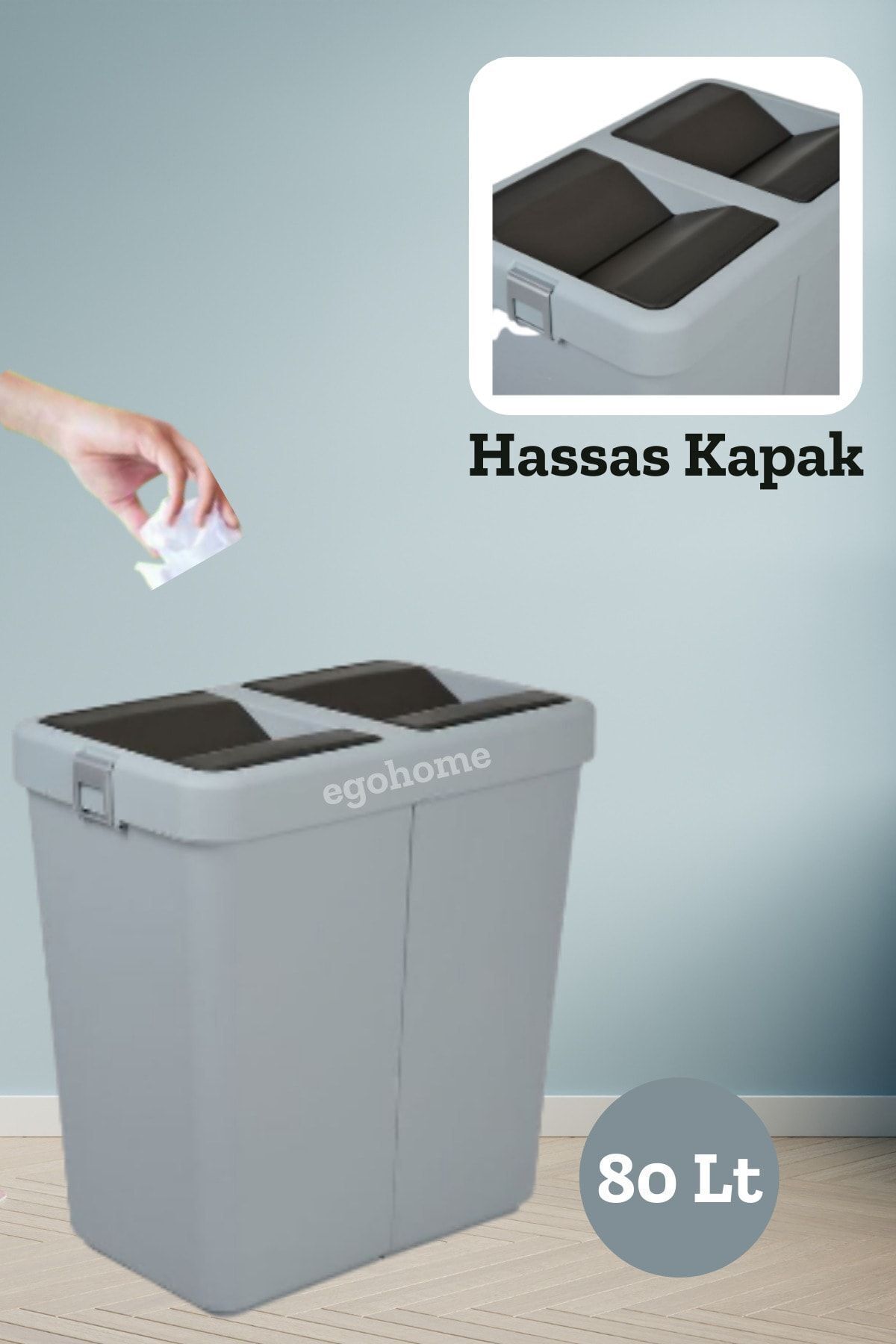 ego home Mote Double Gray Trash Can Bucket with Sensitive Lid Double Lid Gray 80 Lt
