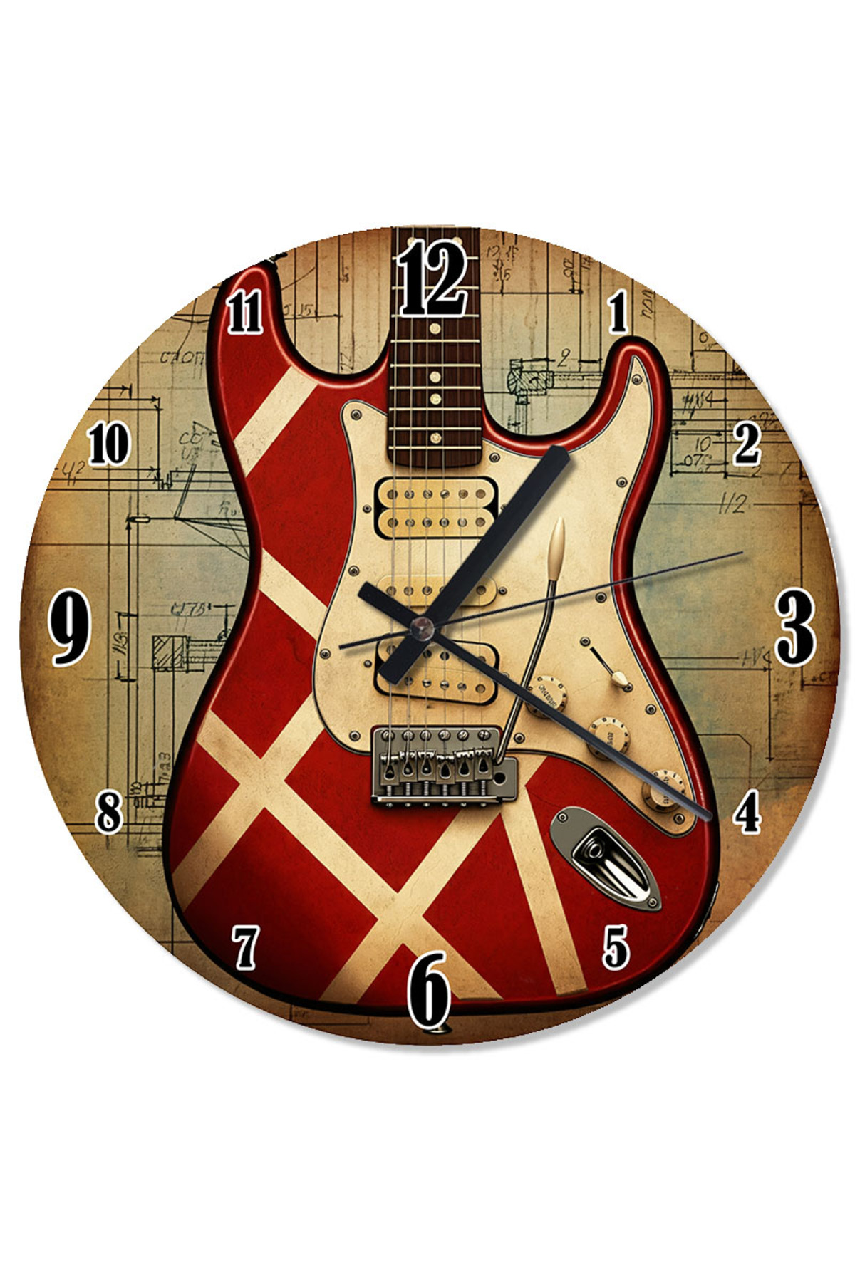 ekart Red Electric Guitar Pattern Wall Clock features