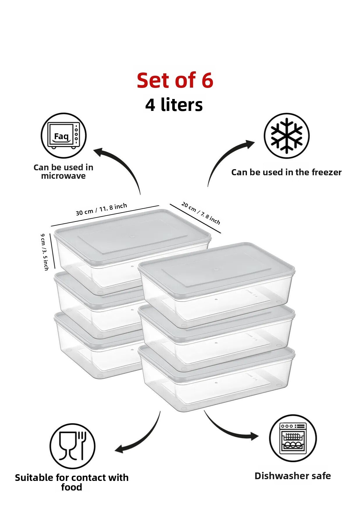 Espas Home Freshkeep Storage Container Set of 6 Suitable for Microwave and Deep Freezer - White / 6*6000 ml