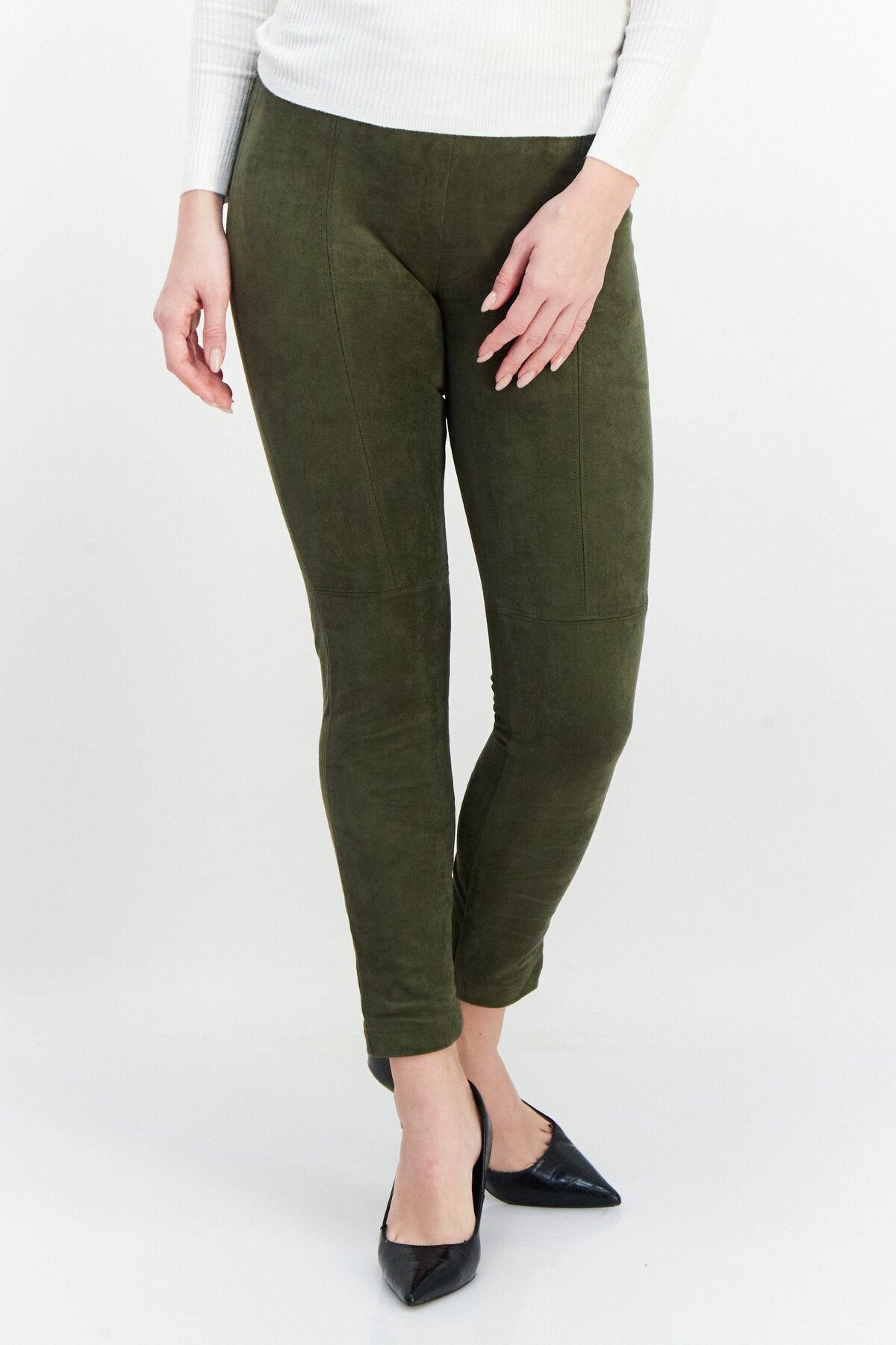 Esprit Women Regular Fit Solid Pants, Olive features