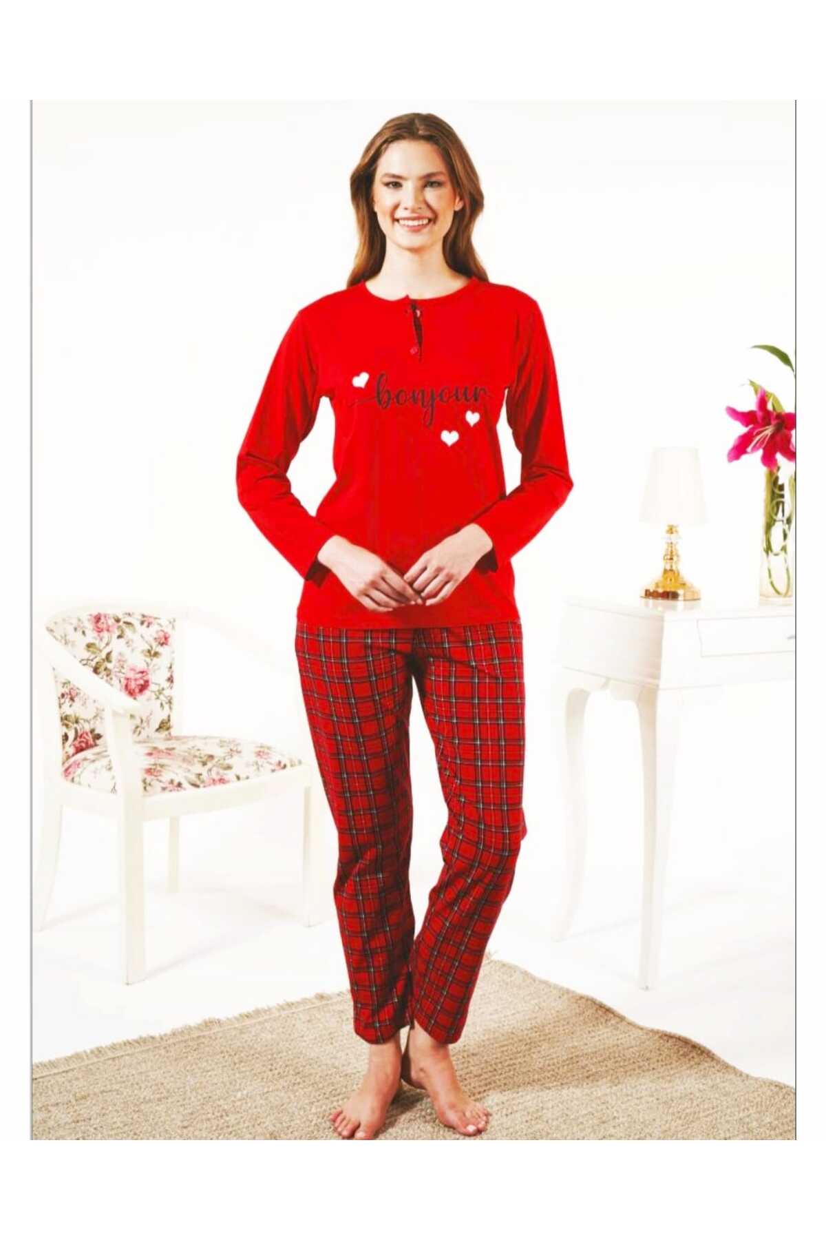 Estiva Plaid Pattern Patch Button Checked Pajama Suit features
