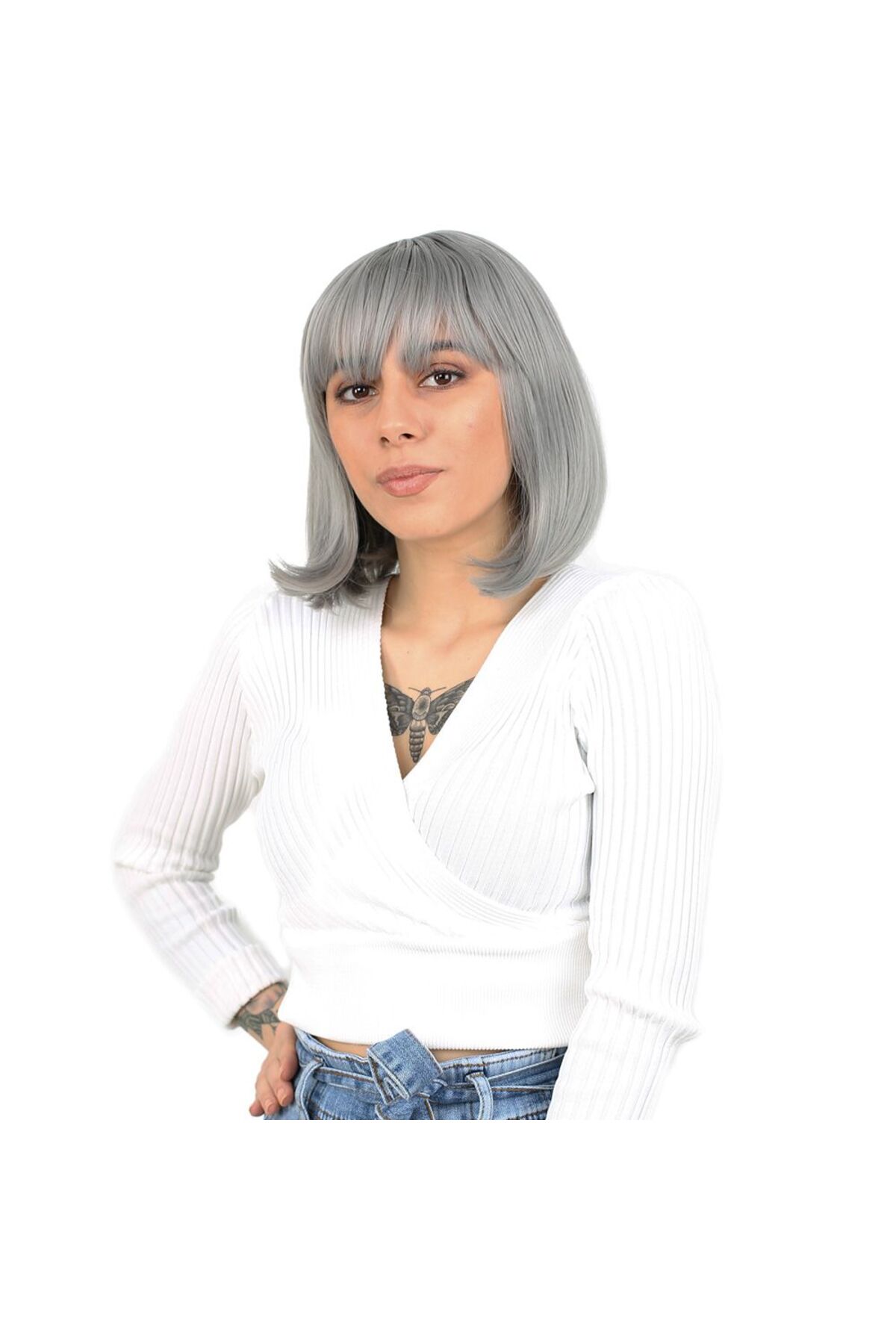Ethab Ticaret Fiber Sen Wig with Blunt Bangs / Gray features