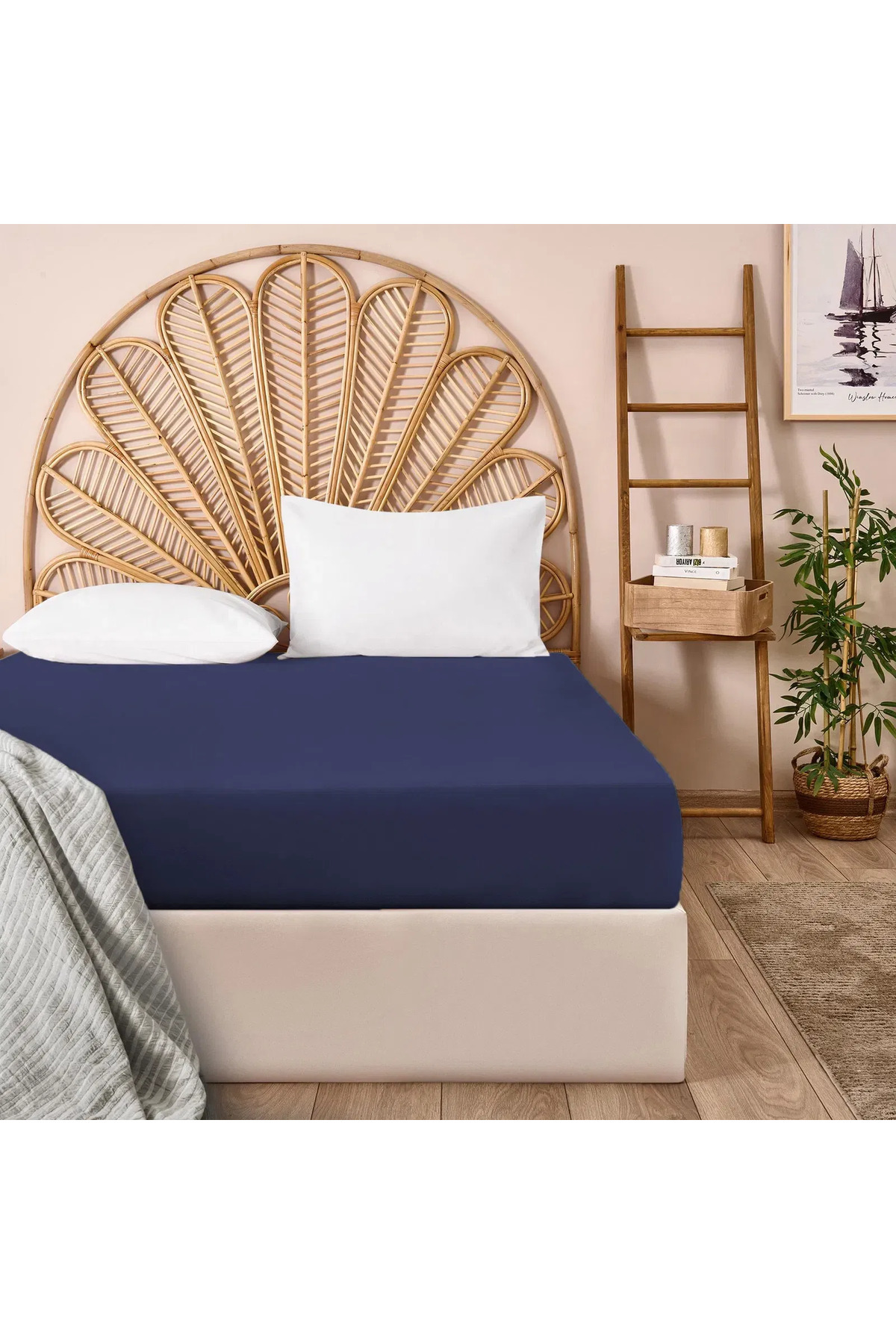 Evidea Soft Basic Single Fitted Sheet - Navy Blue - 100X200 cm