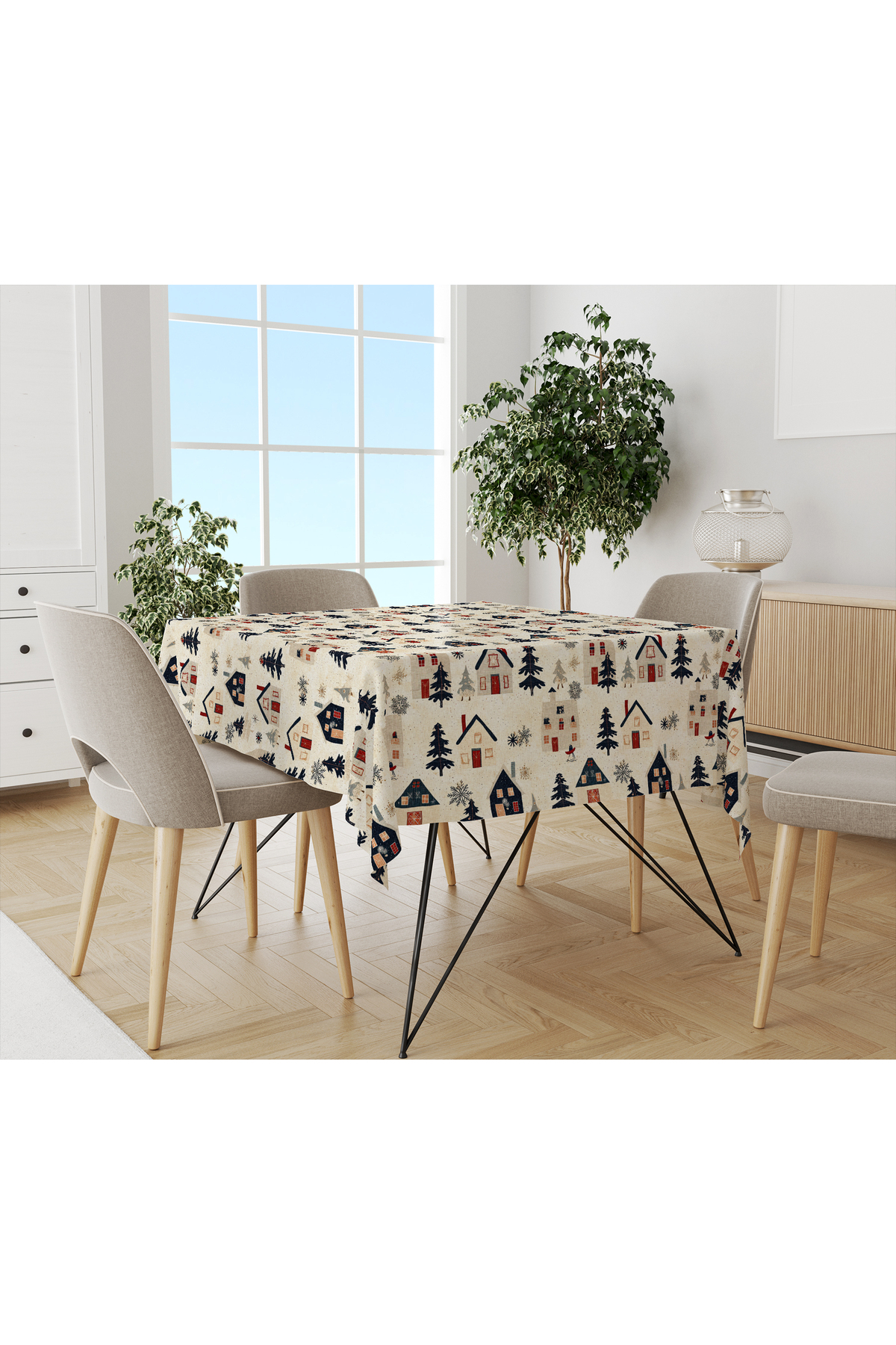 Evmila Christmas Themed Pine Tree Patterned Digital Printed Tablecloth features