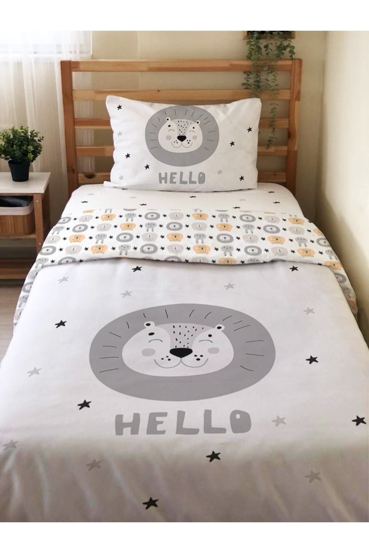 Evmila Double Sided Lion Patterned 2-Piece Set Without Sheets Printed Single Duvet Cover Set White