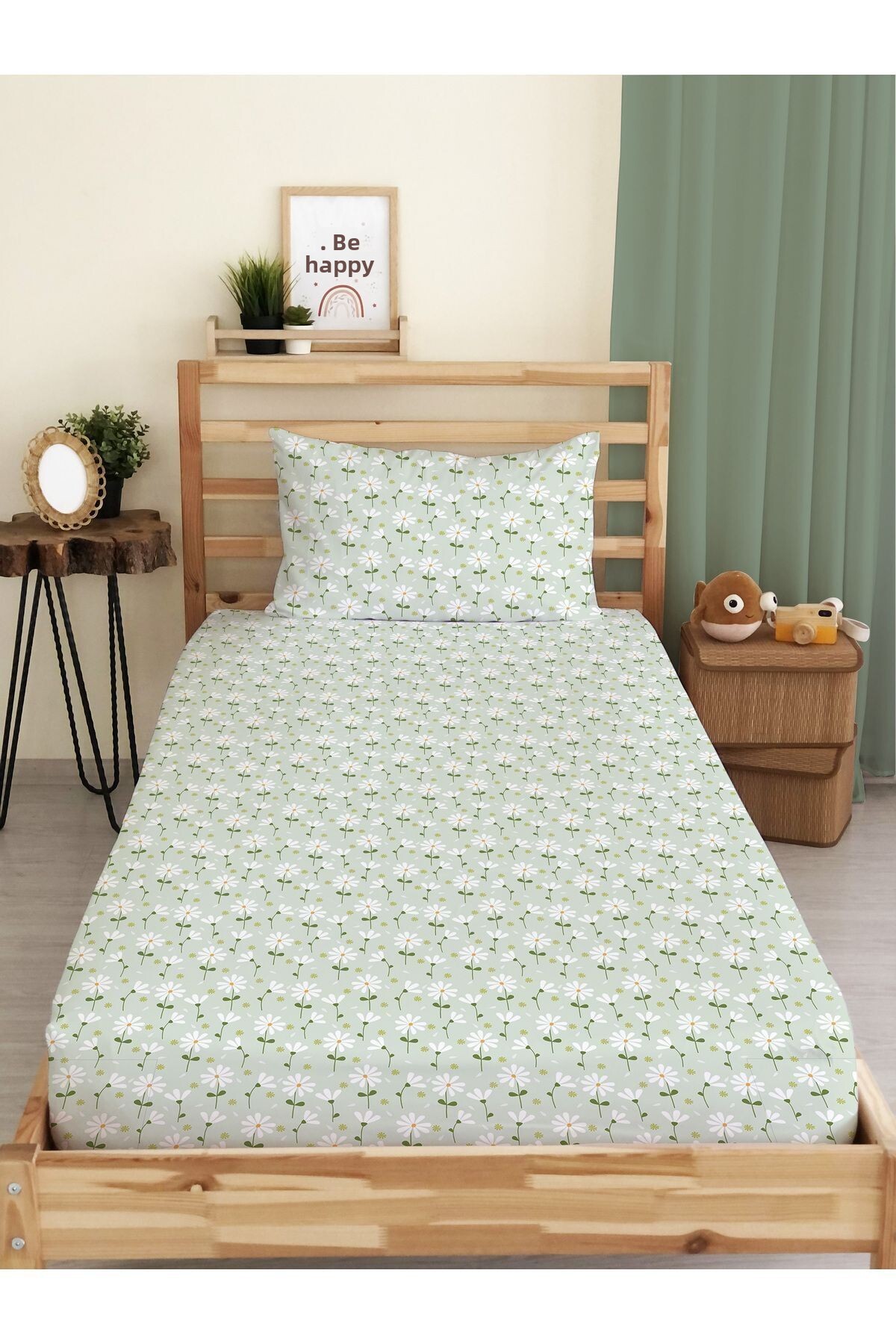 Evmila Floral Patterned Printed Single Elastic Sheet Set features