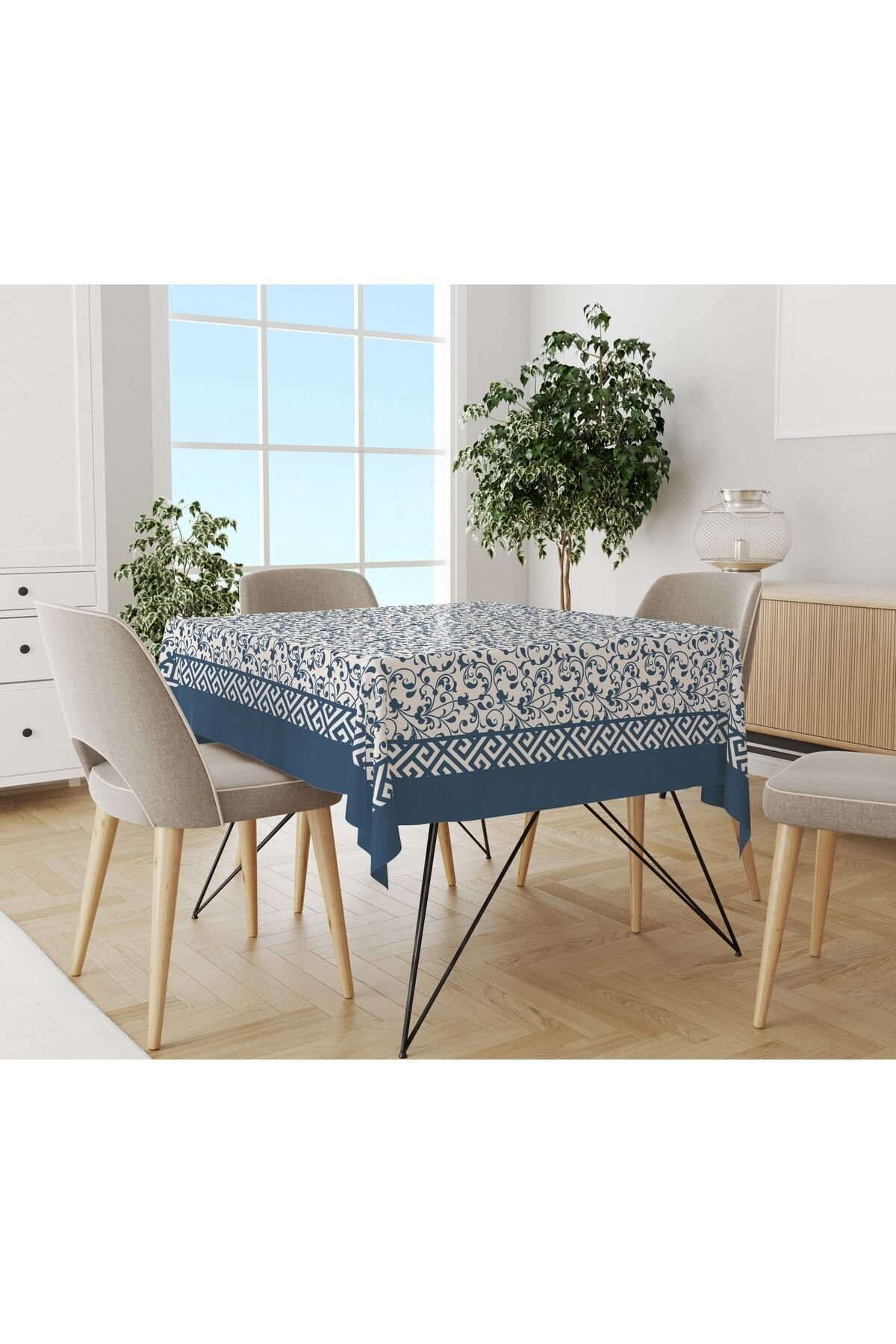 Evmila Floral Patterned Tablecloth Navy Blue