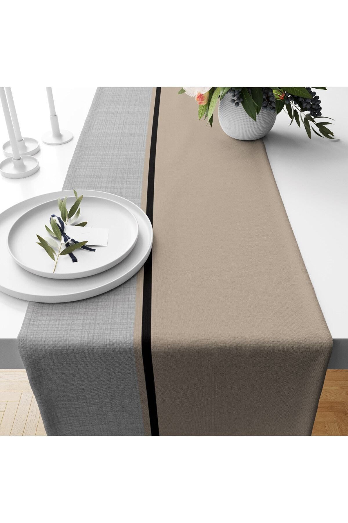 Evmila Gray And Light Brown Pattern Velvet Runner