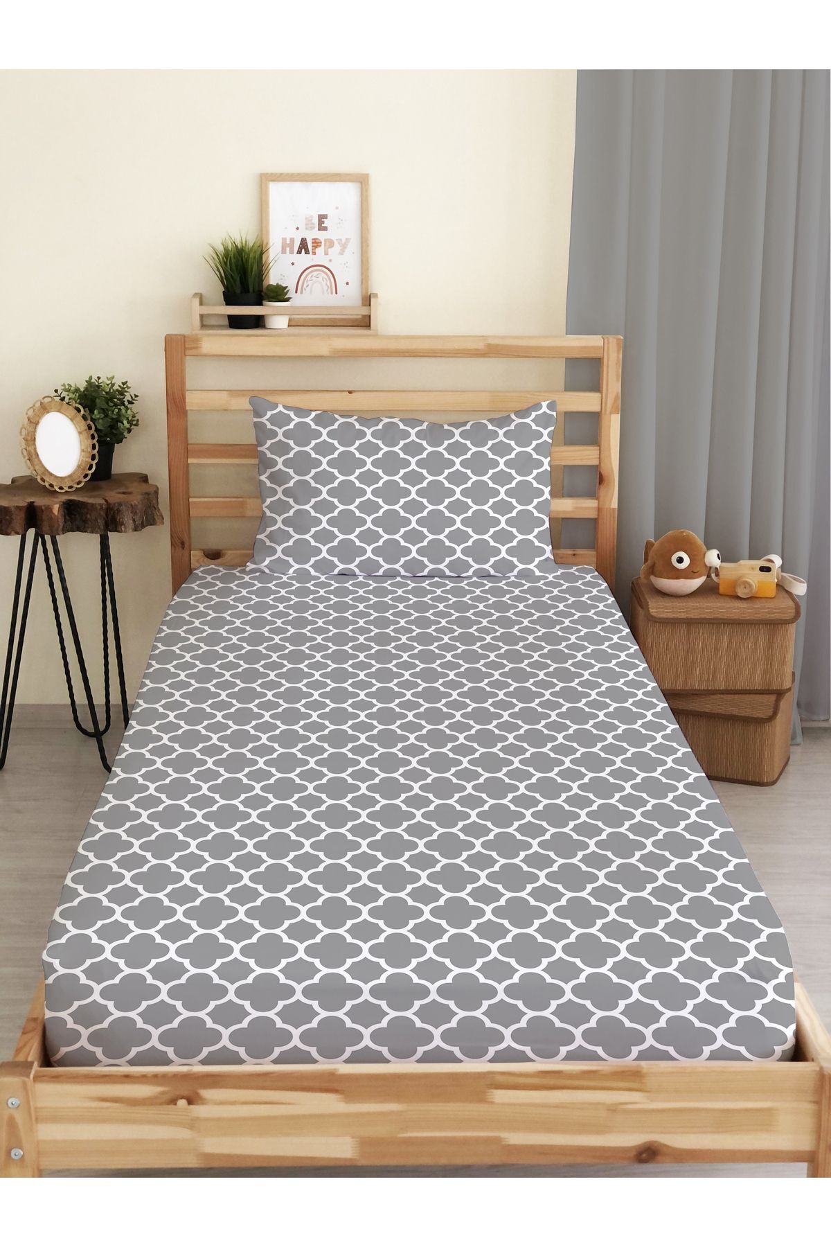 Evmila Gray Modern Patterned Single Fitted Sheet Set