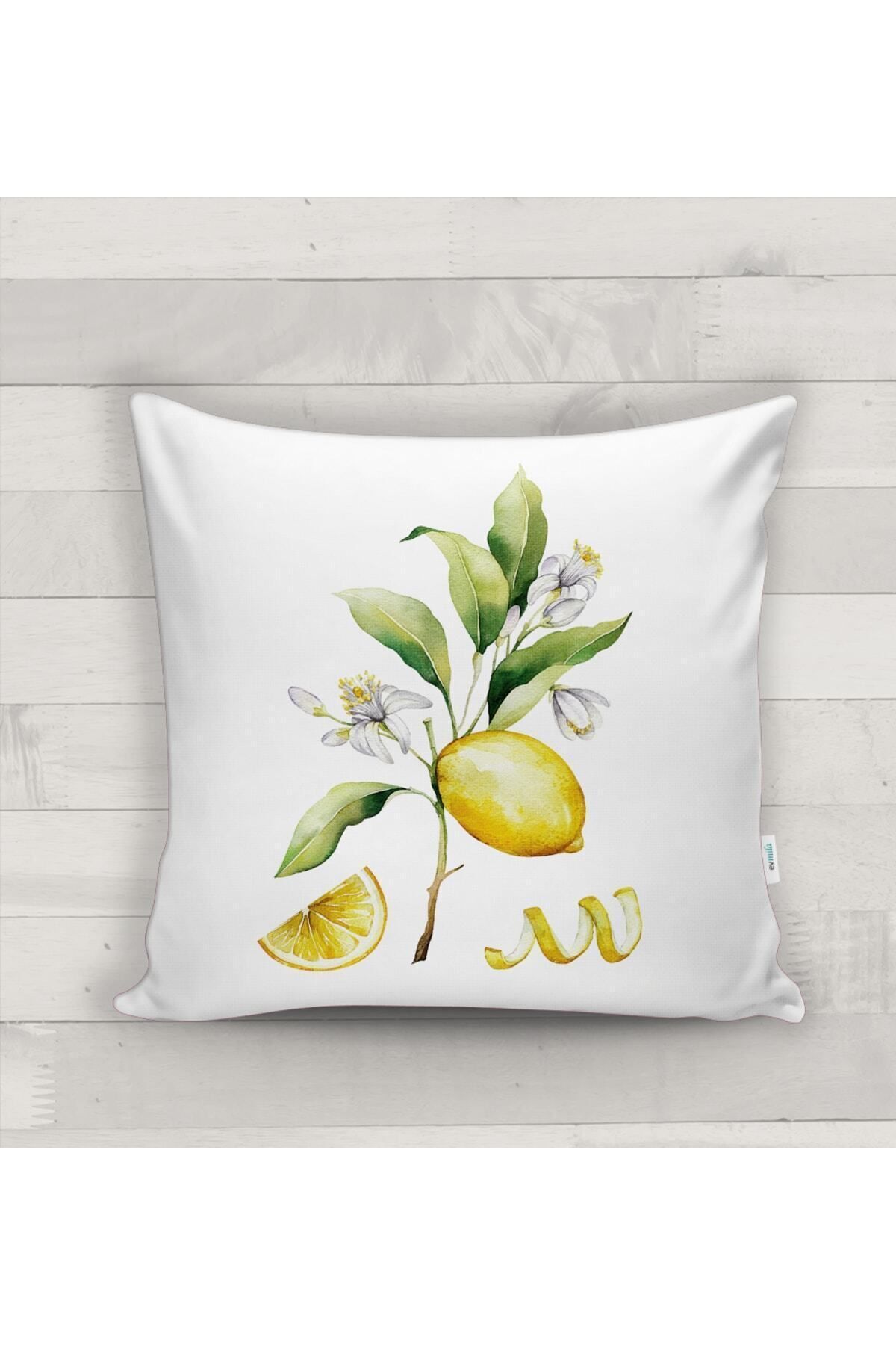 Evmila Lemon Patterned Throw Pillow Cover features