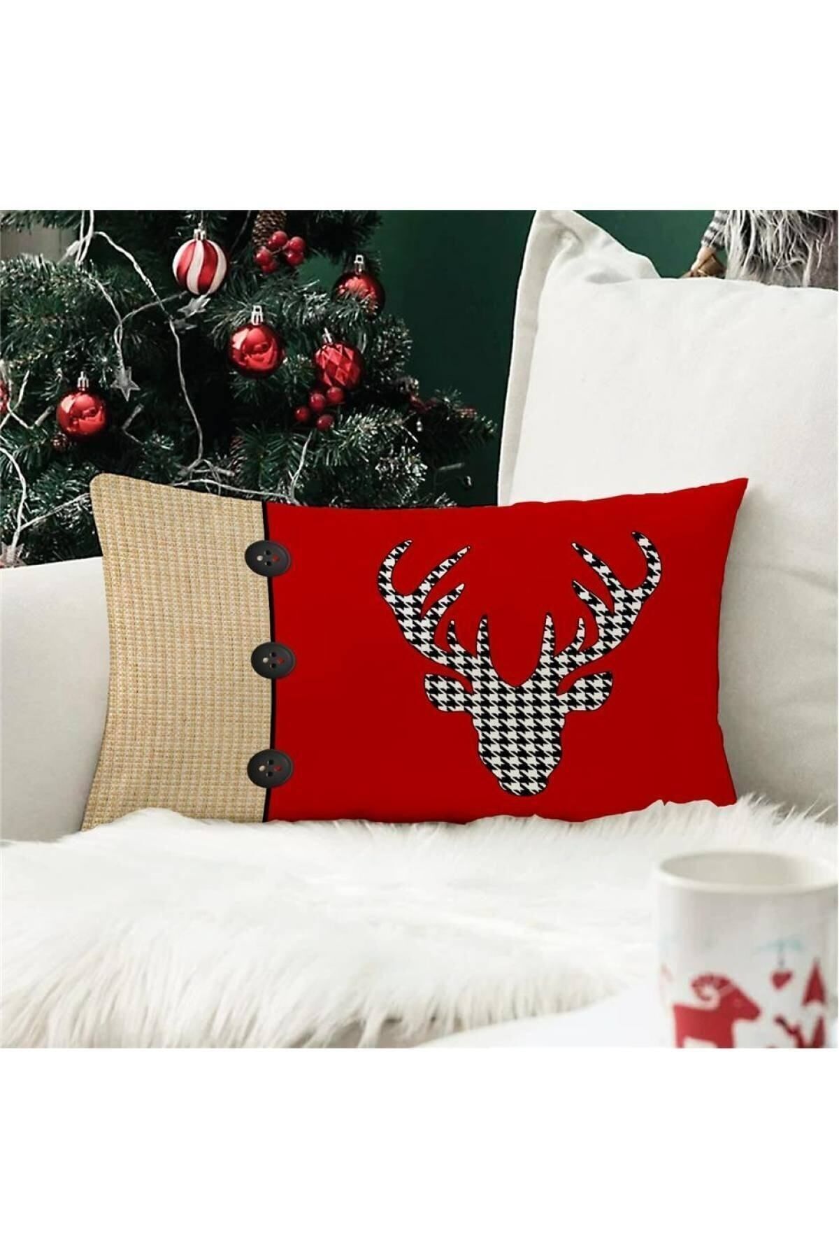 Evmila New Year's Special Deer Patterned Rectangular Throw Pillow Cover