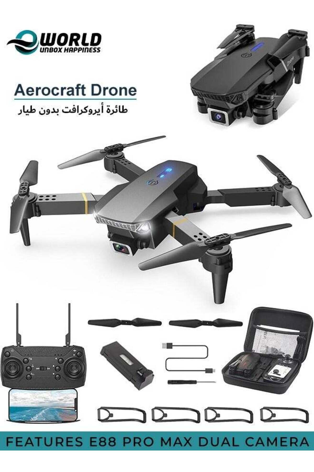 Eworld Foldable Quadcopter E88 Pro Max Drone with 4K Dual Camera features