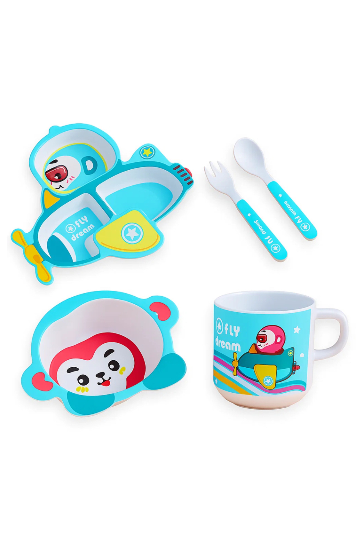 Factory Price 5 Piece Monkey Pilot Bamboo Tableware Set features