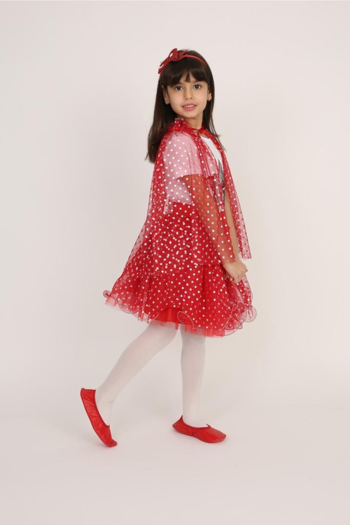 FATELLA Girl's Patterned Red Star Patterned Cloak features