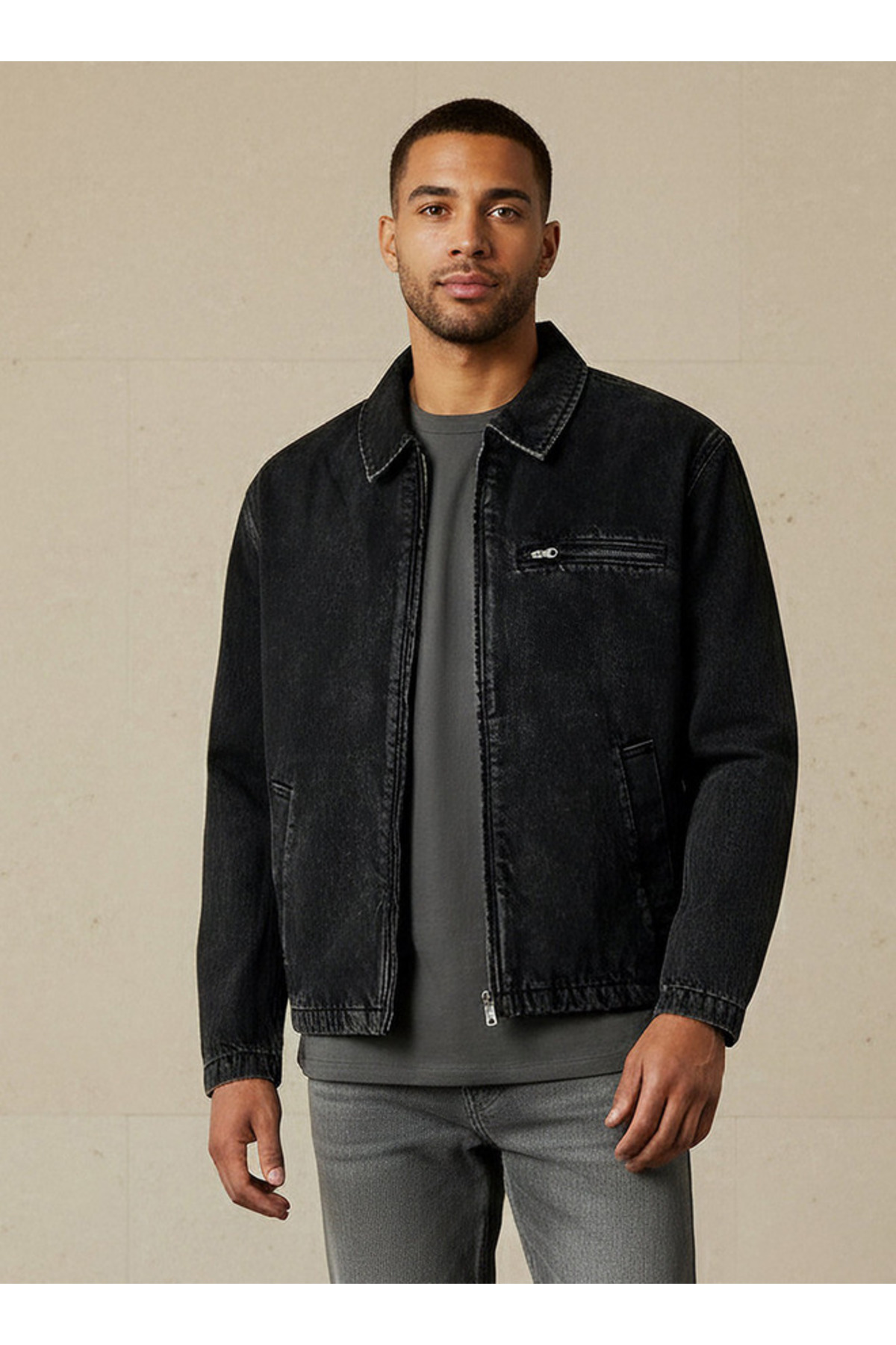FAV Men Regular Fit Zip Through Denim Jacket features