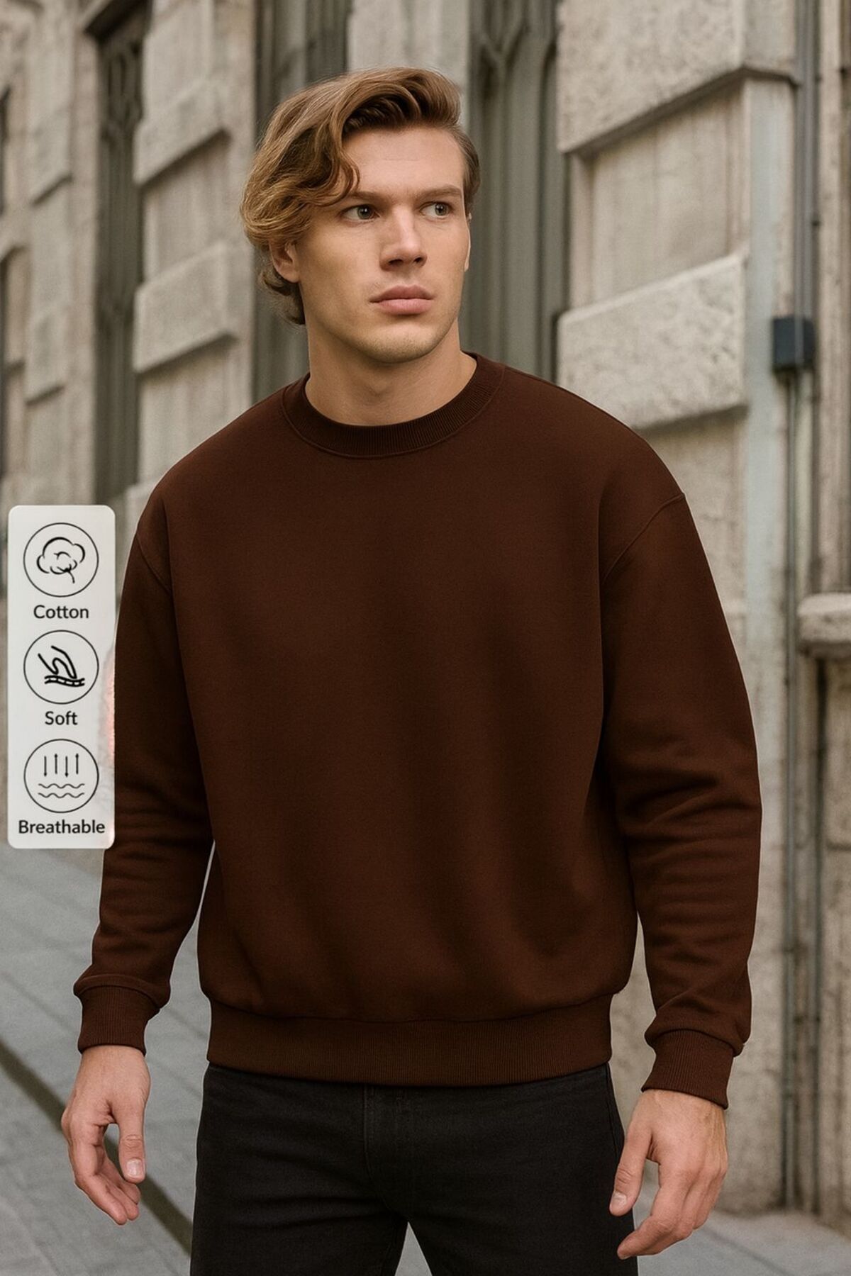 FAVORİST Men's Solid Basic Circular Neck Sweatshirt