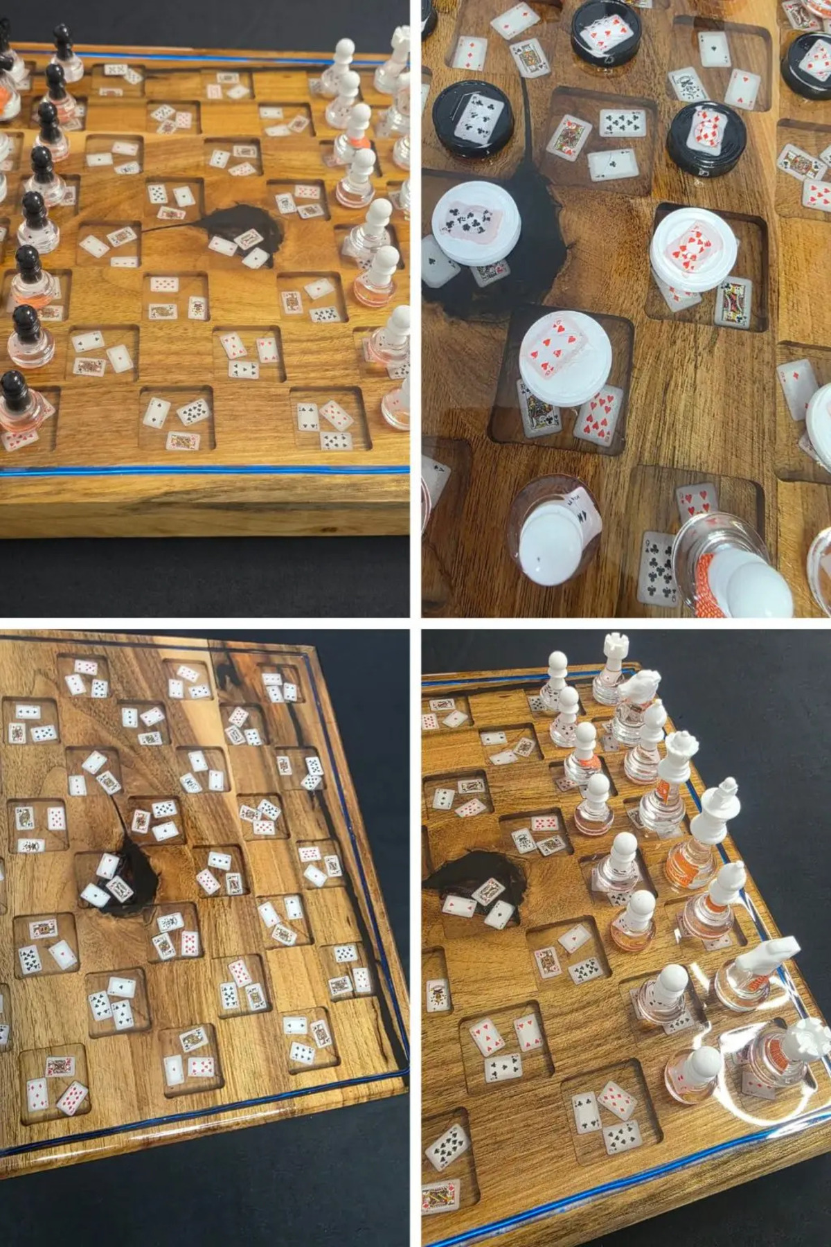 The smooth and glossy surface of the tabletop, due to the epoxy resin, is extremely easy to clean. A simple wipe with a soft, damp cloth is sufficient to remove dust and stains. The walnut wood is treated to resist wear and tear, ensuring the board will last over time.
