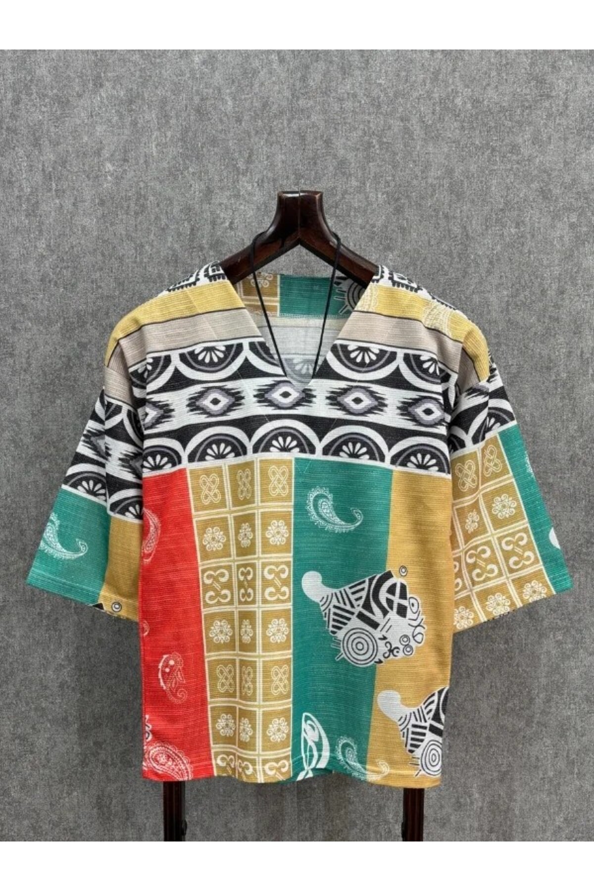 FıttingRoom Oversize V Neck Poor Sleeve Patterned Tshirt features