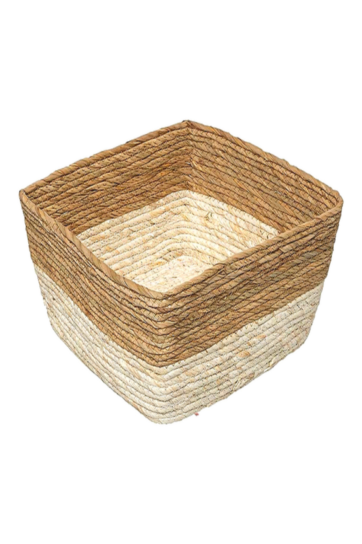 Five Simply Smart Two Tone Rectangular Breaded Storage Laundry Basket