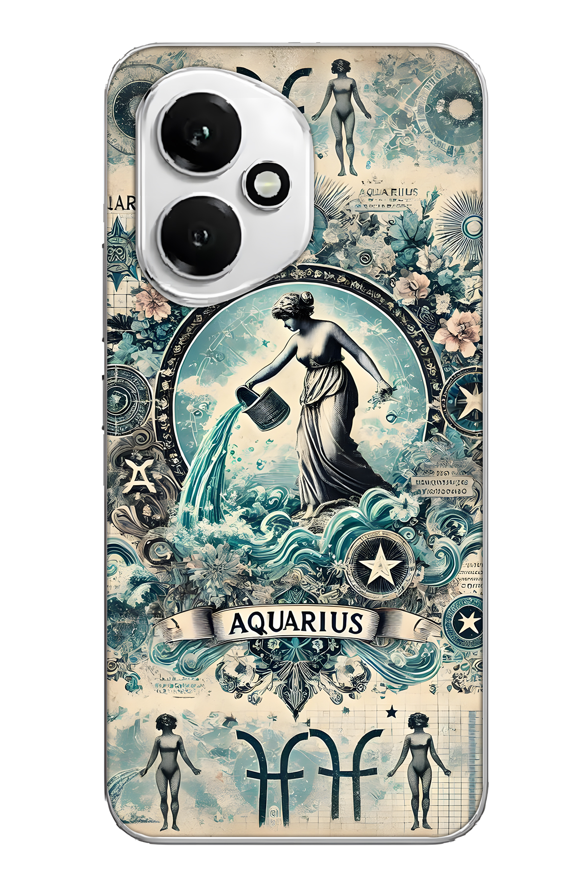 FLAMENKO Honor 400 Compatible Aquarius Patterned Transparent Phone Case features