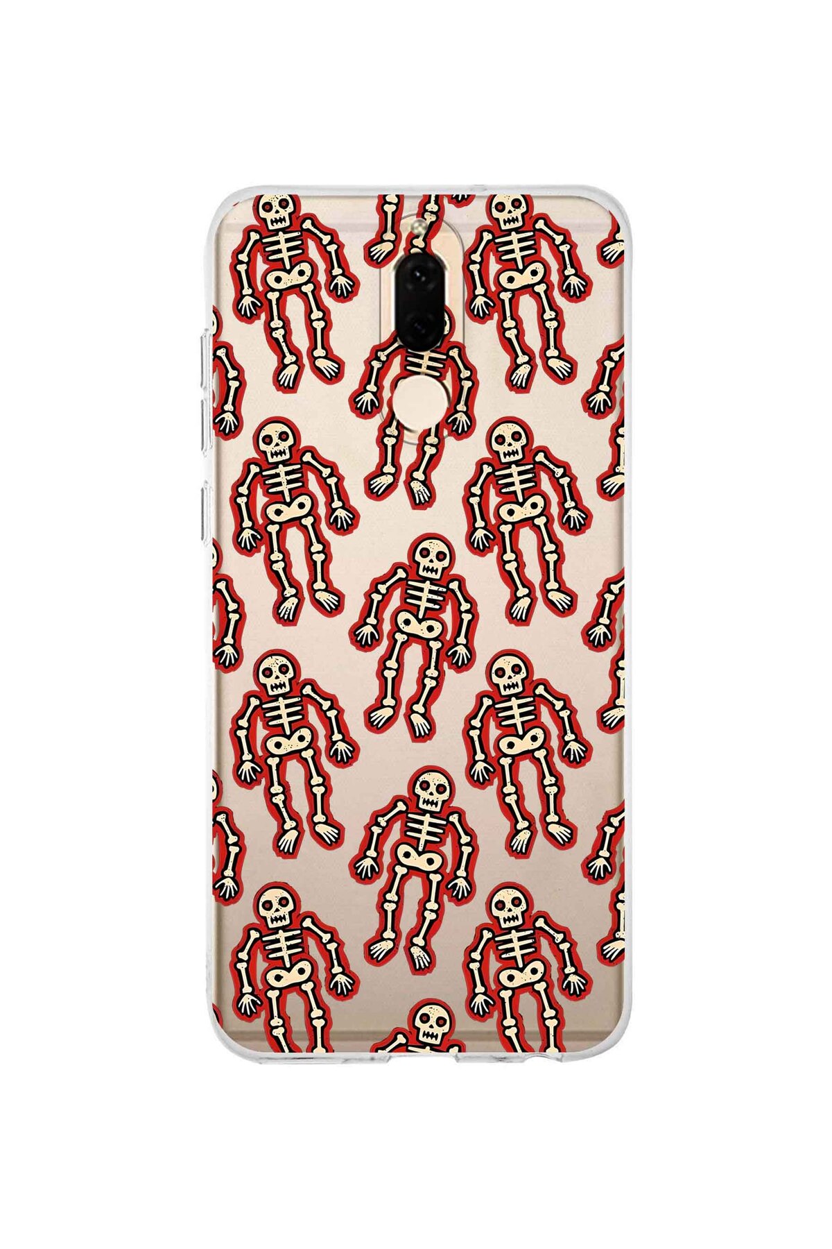 FLAMENKO Huawei Mate 10 Lite Compatible Skeleton Pattern Patterned Transparent Phone Case