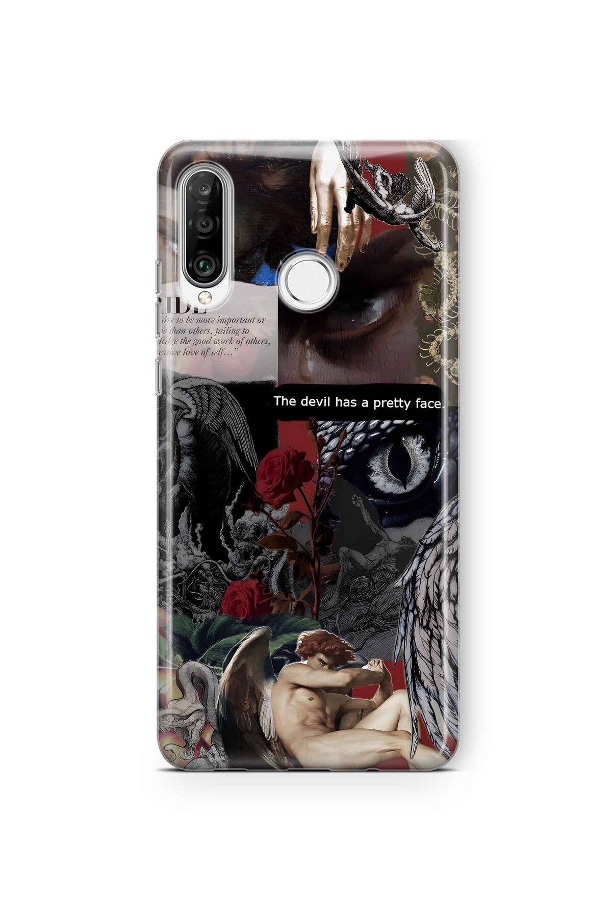 FLAMENKO Huawei P30 Lite Compatible Devil Face Patterned Transparent Phone Case features