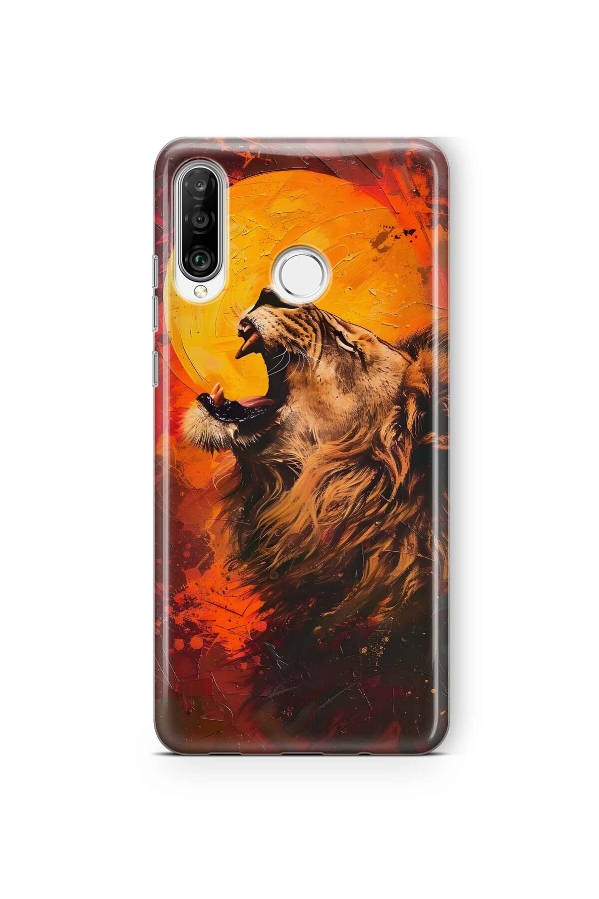 FLAMENKO Huawei P30 Lite Compatible Lion Pattern Transparent Phone Case