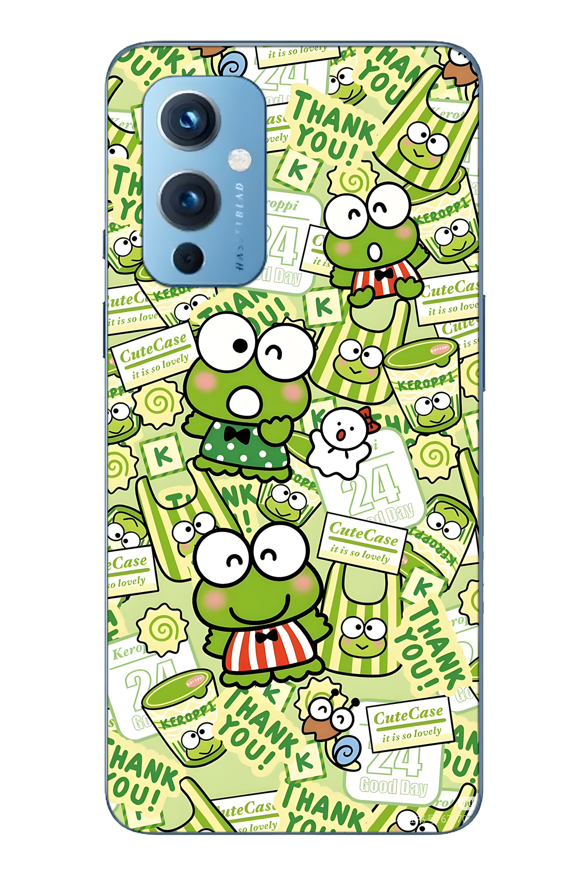 FLAMENKO One Plus 9 Compatible Cute Frog Patterned Transparent Phone Case