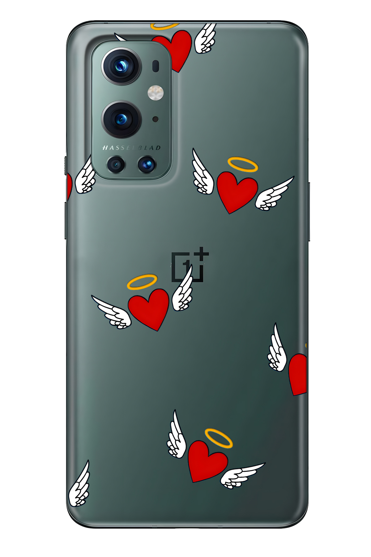 FLAMENKO One Plus 9 Pro Compatible Angel Heart Patterned Transparent Phone Case features