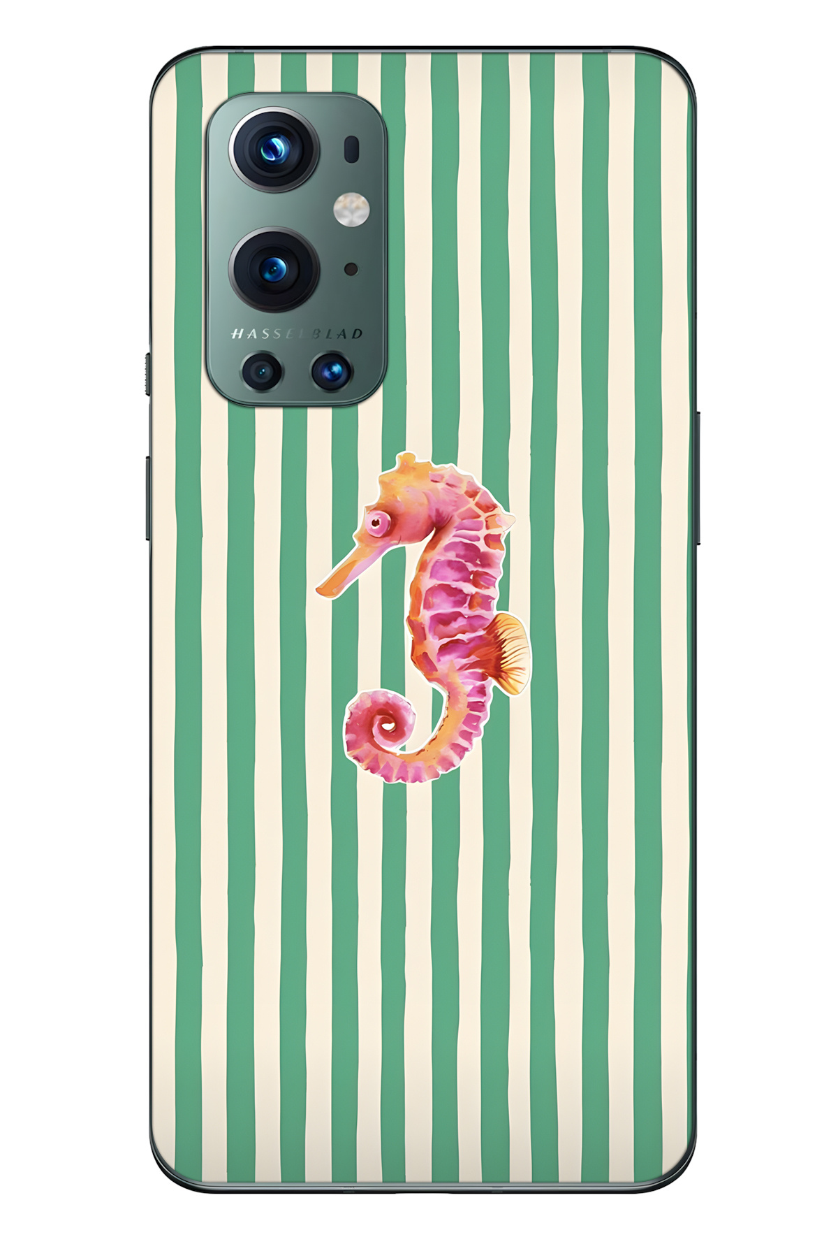 FLAMENKO One Plus 9 Pro Compatible Seahorse Patterned Transparent Phone Case features
