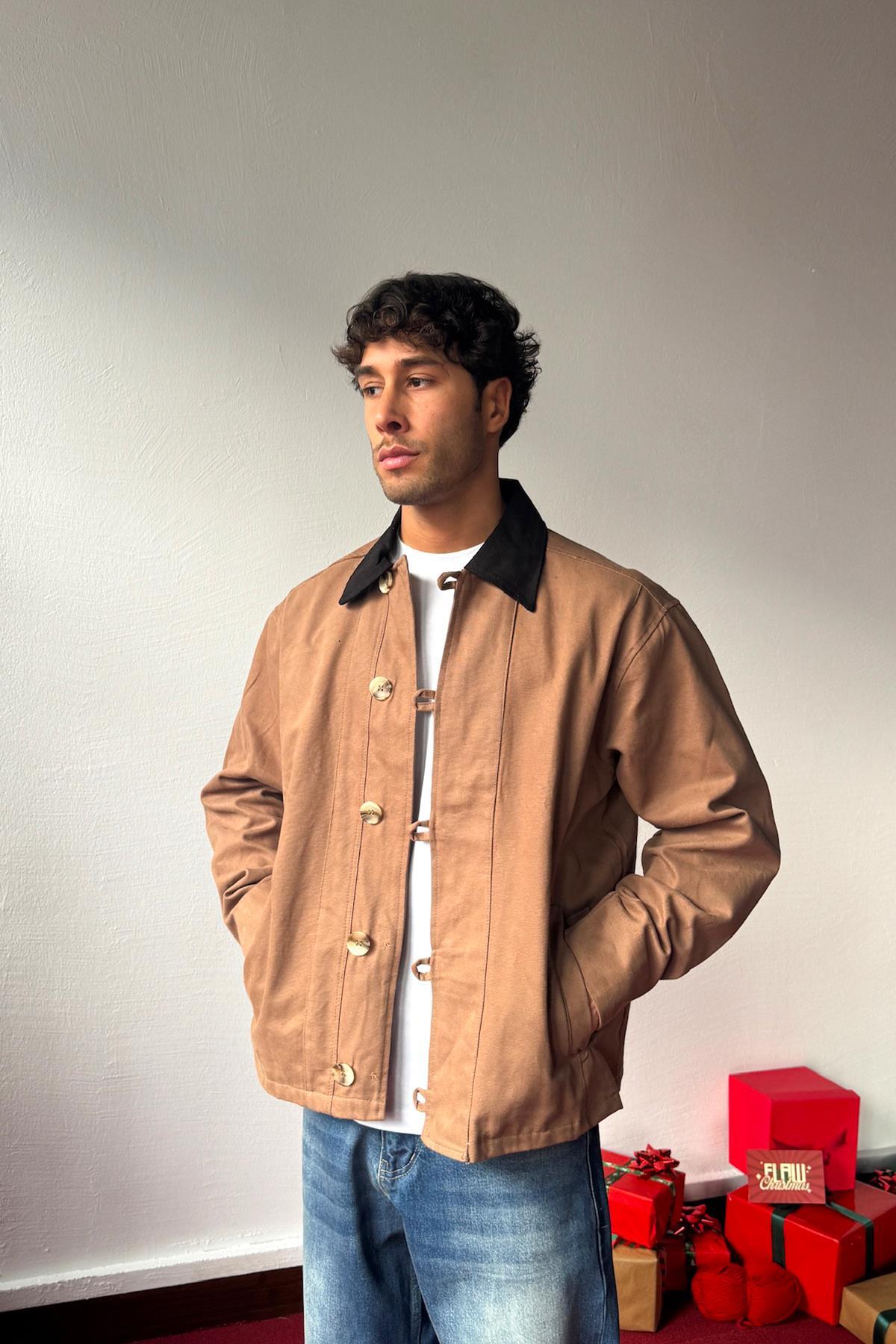Flaw Wear Buttoned Oversize Jacket Brown features