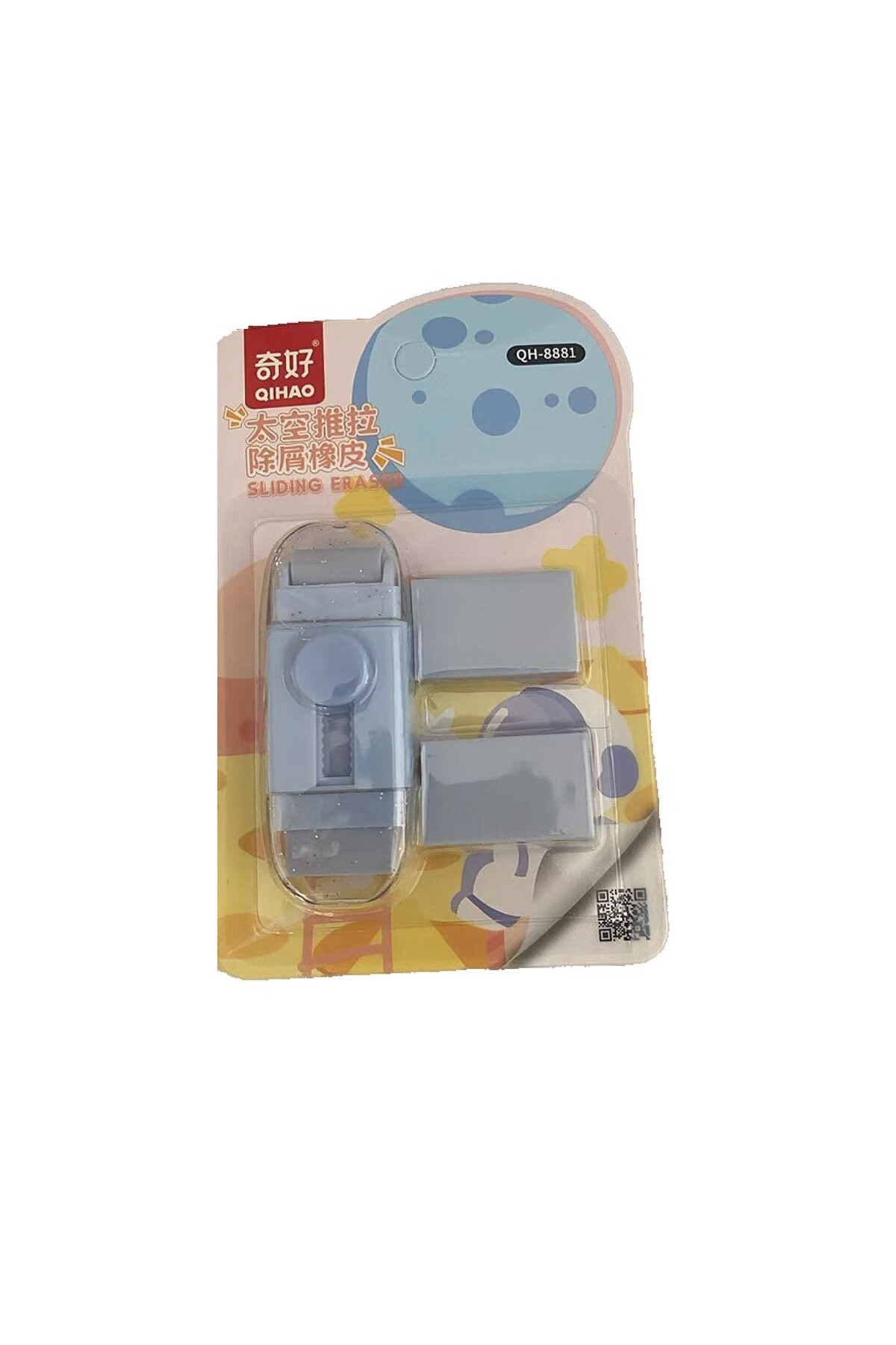 Flippy Eraser with 2 Refills, Adjustable Pull-Push, Rubber, Blue features