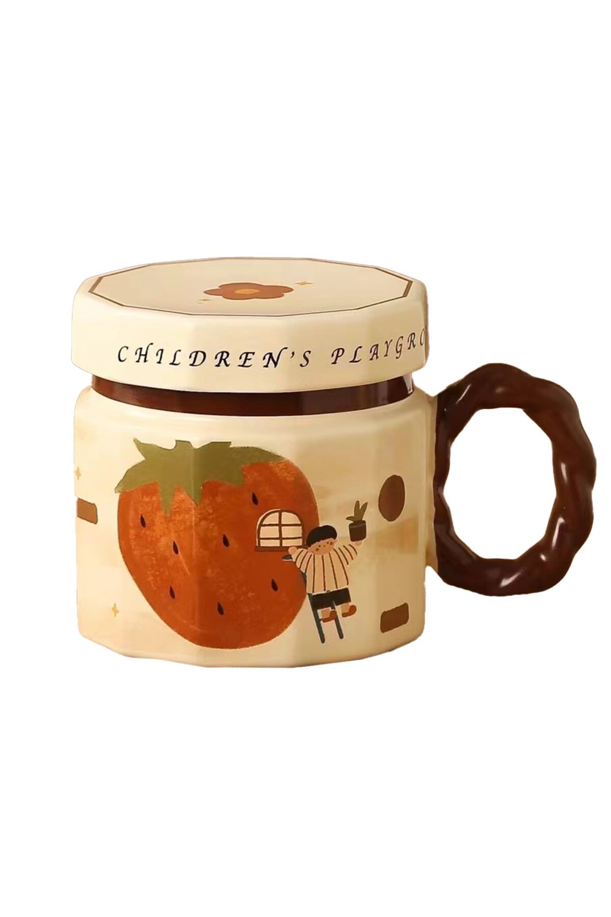 Flippy Flippy Ceramic Mug, 400 ml, Strawberry Pattern, Beige features