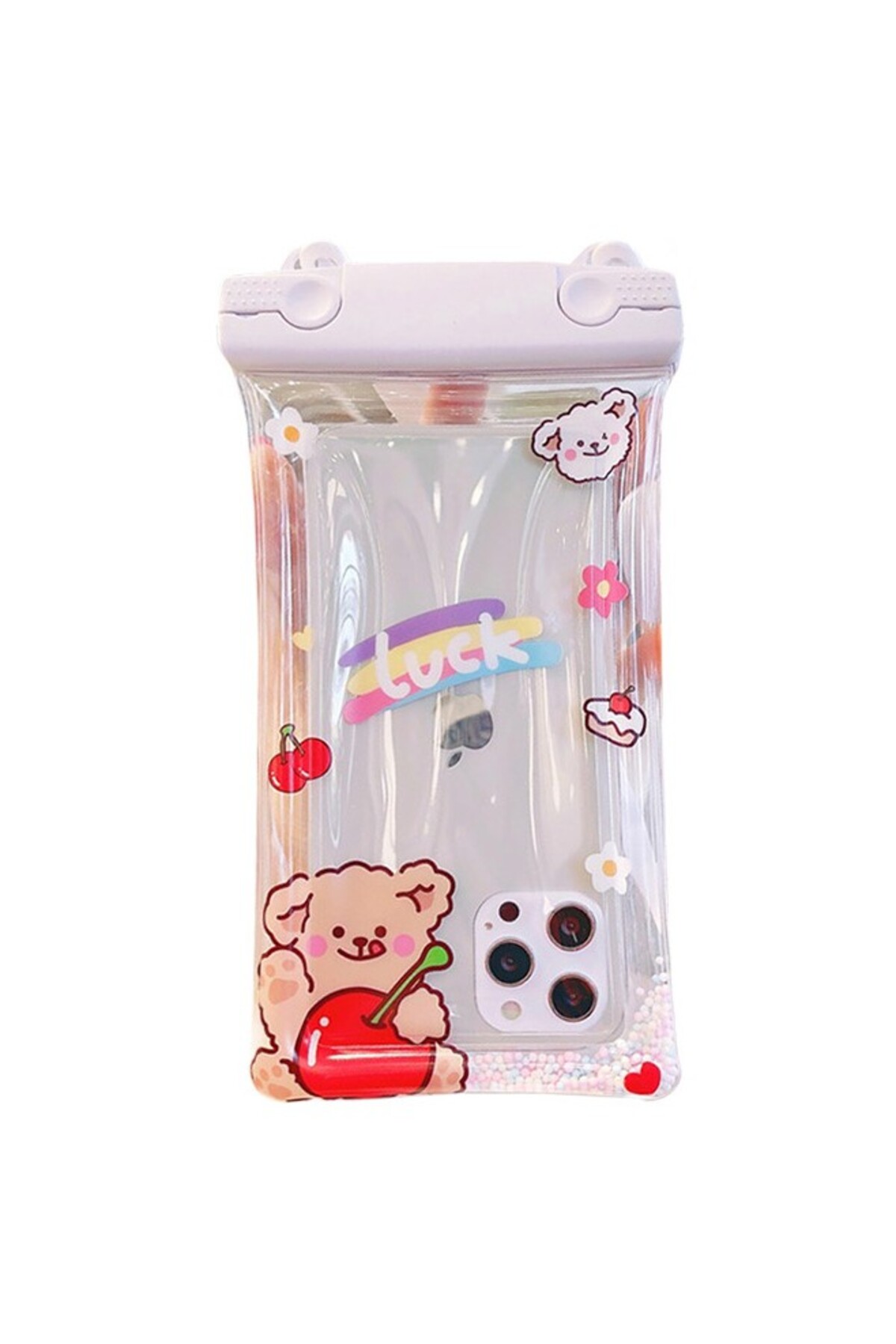 fruity Waterproof Flippy Universal Subaquatic Case, Cherry Bear, White features