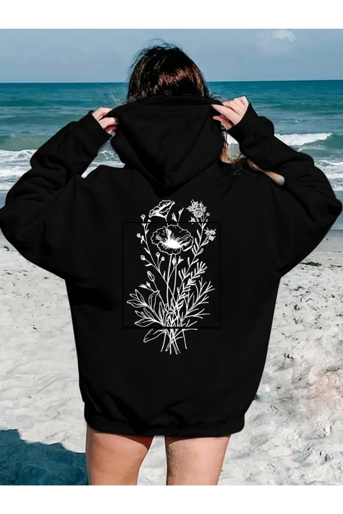 FUFLUNS Oversize Sweatshirt with Flower Back Print