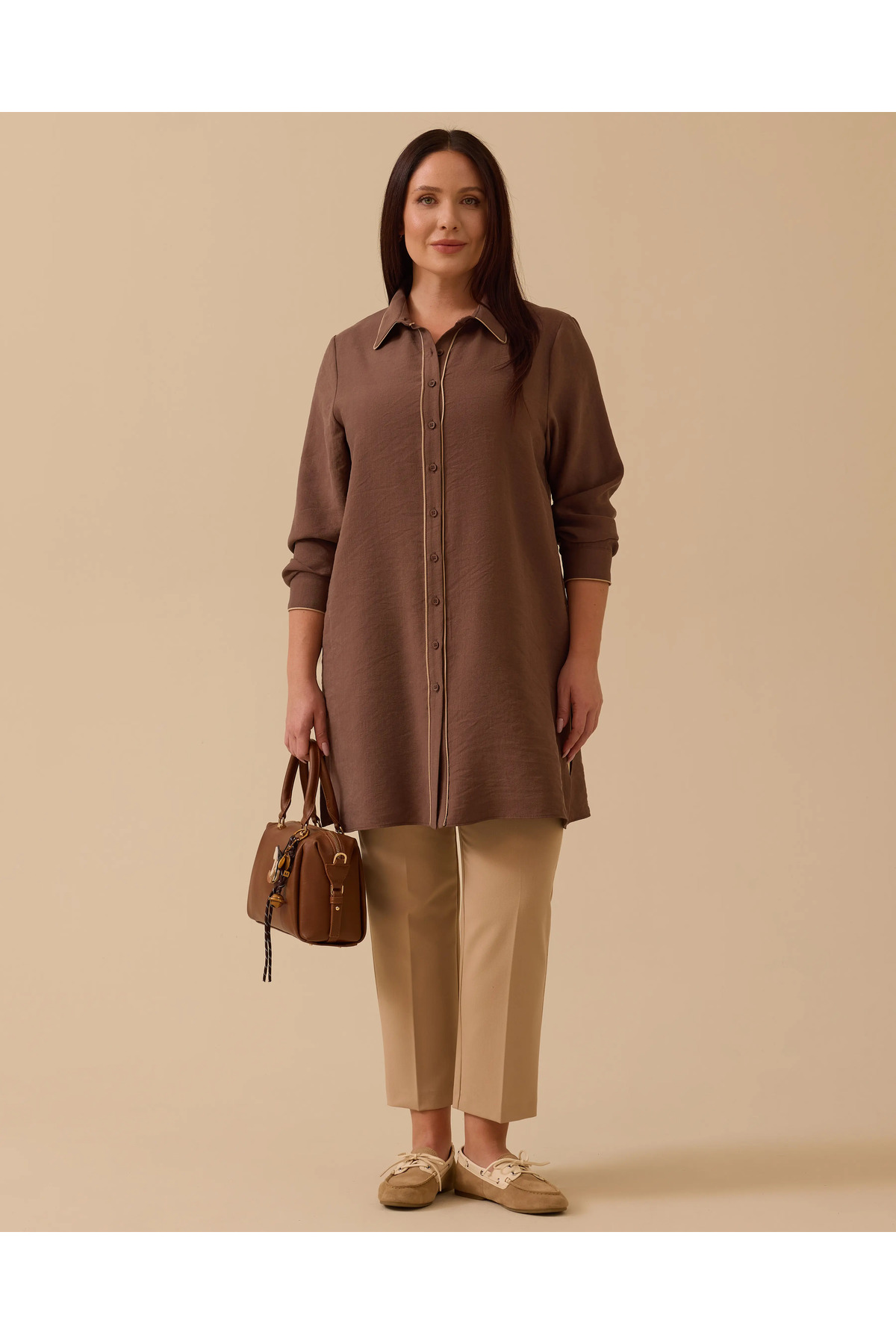 Gala-Xi Plus Size Piped Basic Tunic features